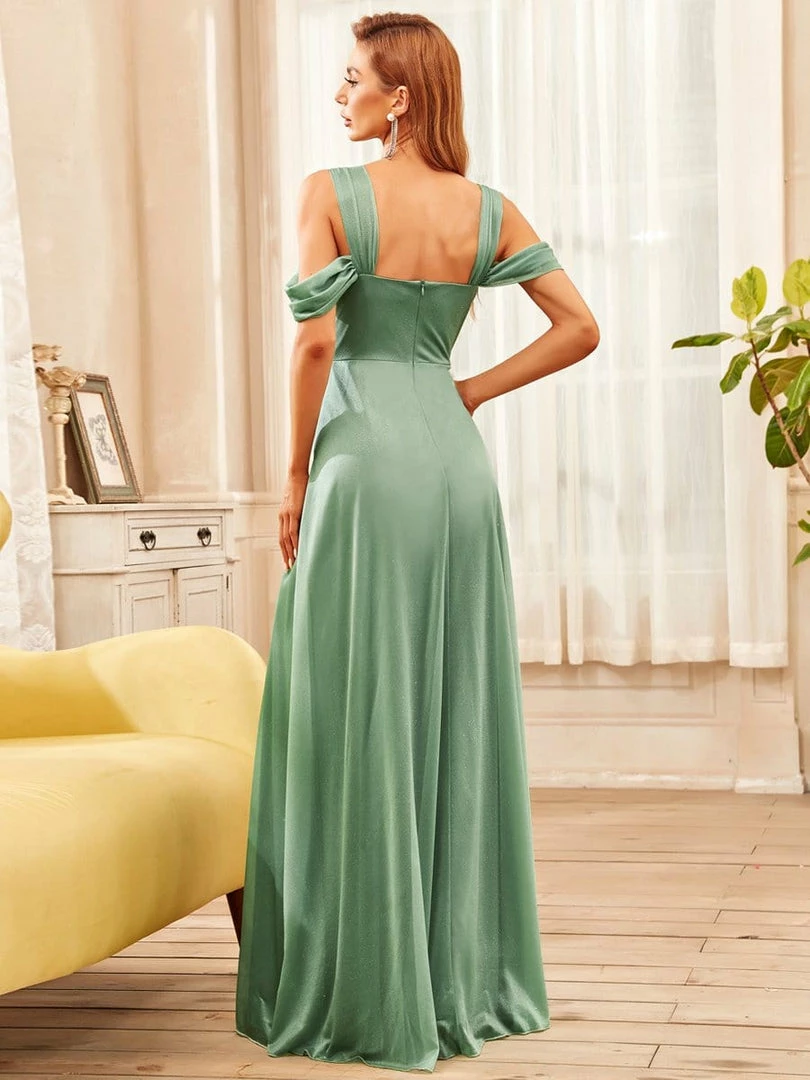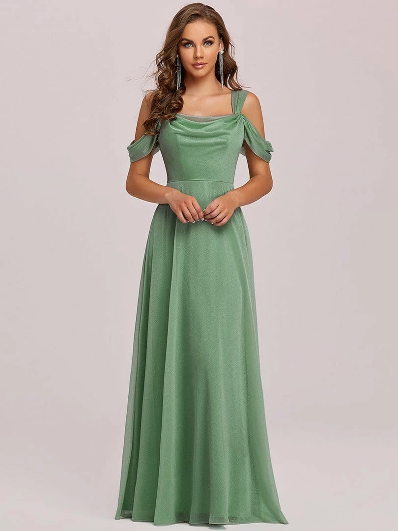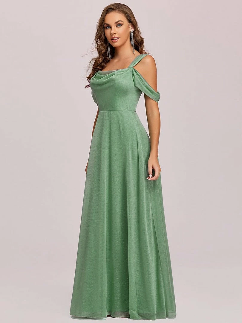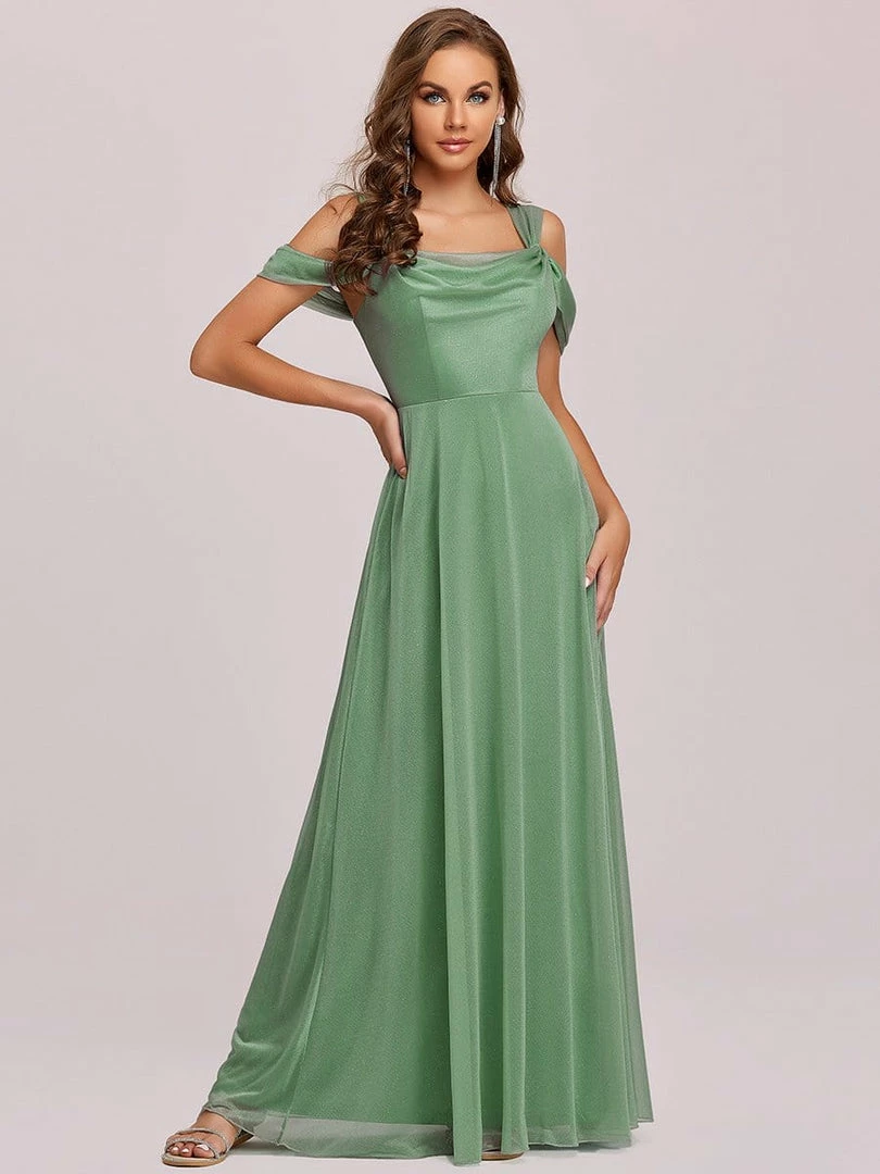 This A-line evening dress can be worn to a banquet, party, formal function, wedding, or birthday, featuring classic lines and a stunning fit, just right for any special occasion. The cold shoulder top, fitted bodice, and floor-length bottom can be paired with heels or flats.