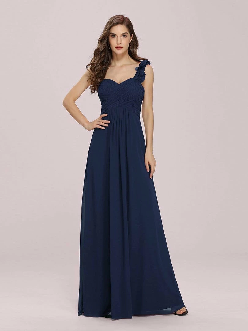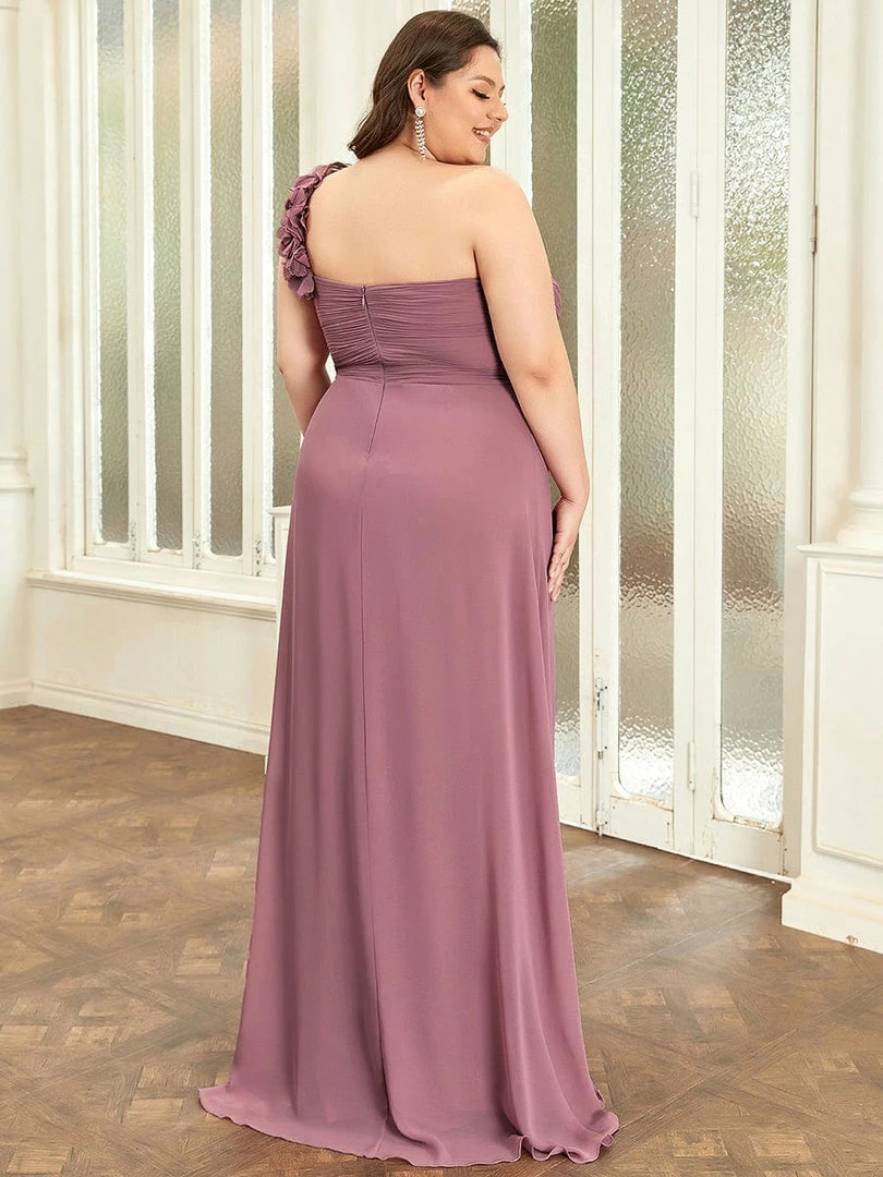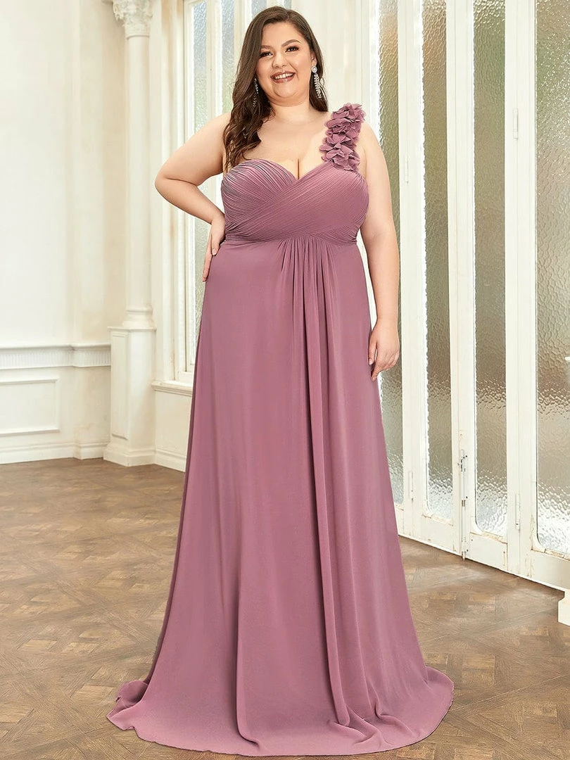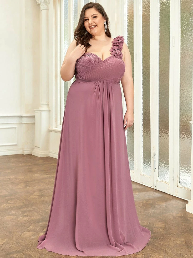 Custom size bridesmaid dresses at Ever Pretty. This stunning one strap chiffon bridesmaid dress features a flattering ruched sweetheart neckline with a draping lower design in the lower half of the silhouette. The flower detailing on the single shoulder strap gives the one strap bridesmaid dress a sweet touch. This pleated one shoulder bridesmaid dress has sweet pink color, timeless burgundy, romantic purple, modest grey and more colors for you to choose from. Really perfect for all formal occasions, from evening party, cocktail, weddings to prom, homecoming, and graduation! Prices will vary as certain colors of this style is on sale.