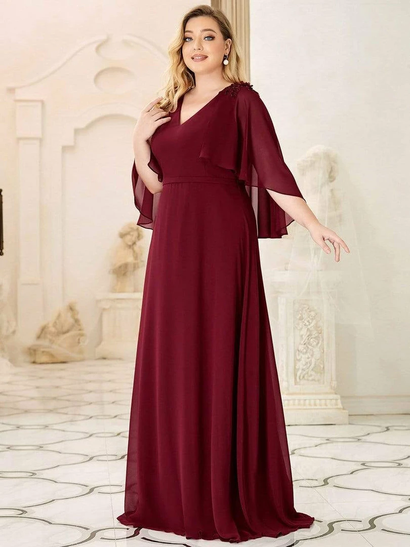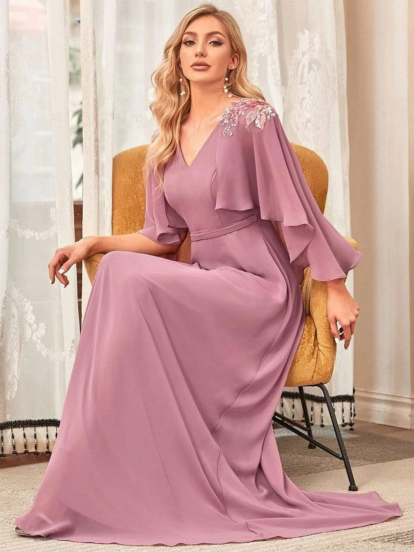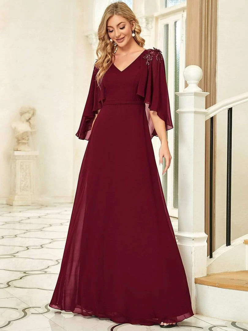 Featuring a classic V neckline, a flowy skirt and short sleeves, this elegant evening dress is a perfect choice for people who are looking for an elegant look. We think this romantic bridesmaid dress is perfect for evening party, cocktail, prom, homecoming, graduation, weddings, and any other formal affair!
