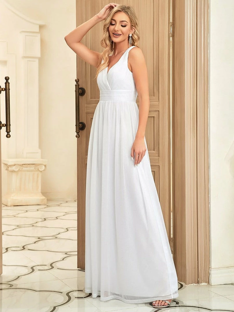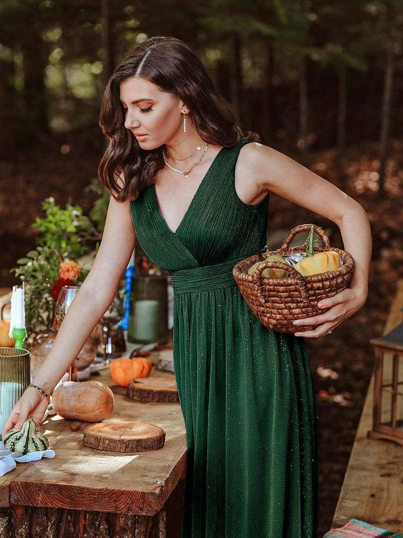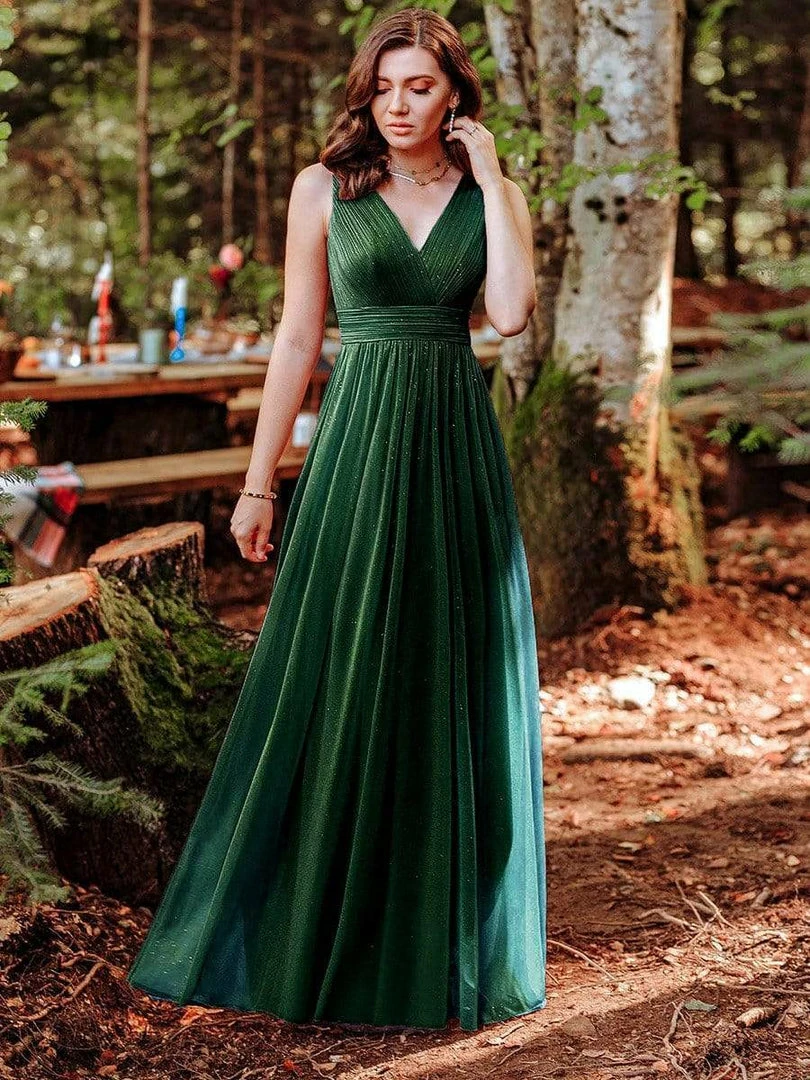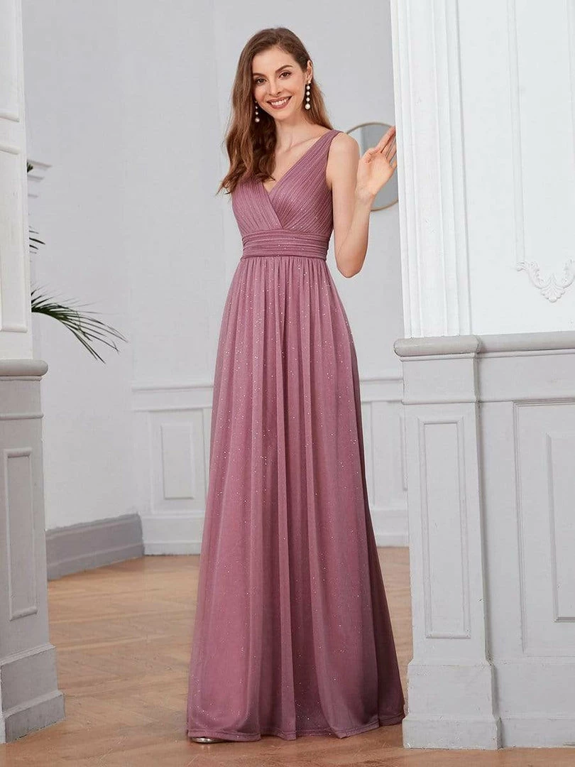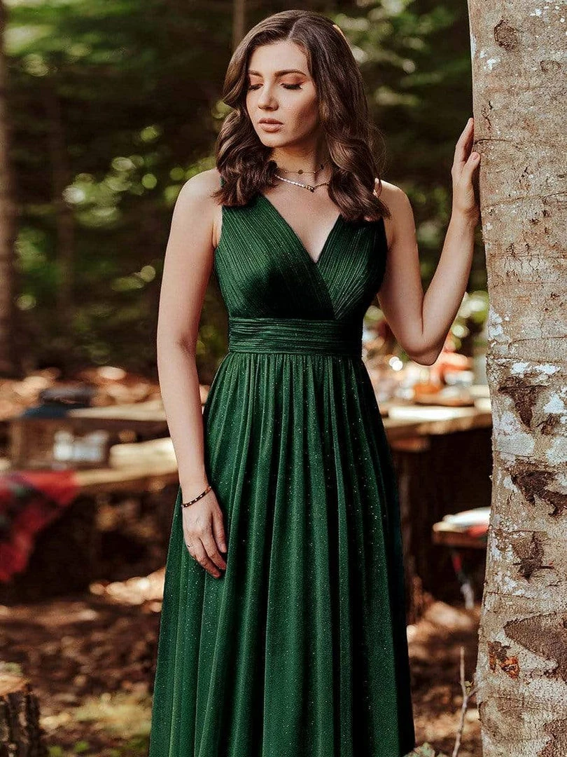 This evening dress features a double V neckline and an A-line skirt,while the ruching in the bust and waist creates a figure-flattering silhouette.What’s better,the stardust fabrics make it the perfect dress for dancing the night away!Perfect for evening party,cocktail,prom,homecoming,graduation,weddings!