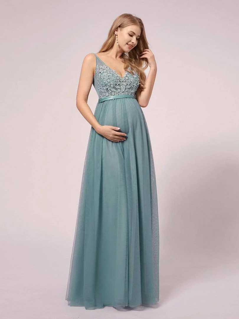 Ever-Pretty US Double V-neck Lace Applique Bodice Maxi Maternity Dress SHOP BY OCCASION
