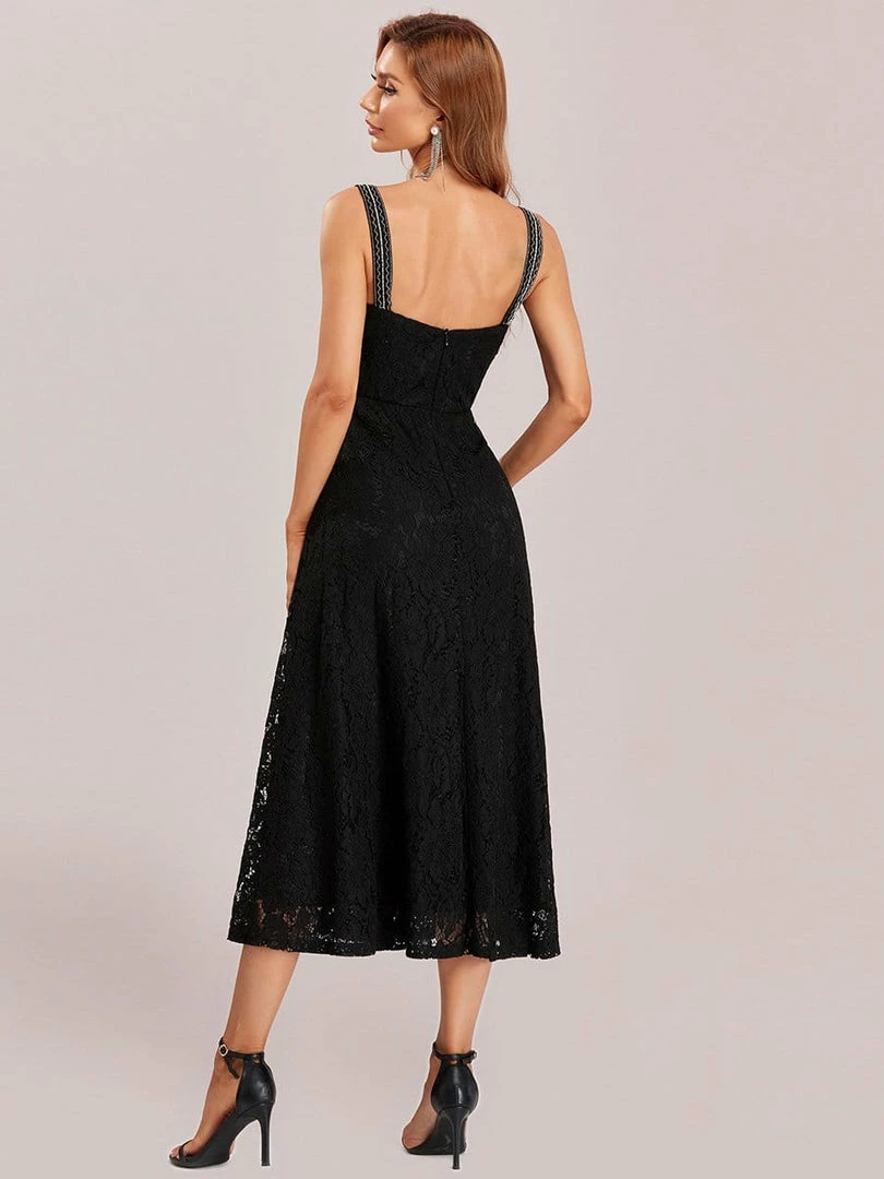 Ever-Pretty US Elegant Beaded Strap Sweetheart Midi Lace Evening Dress