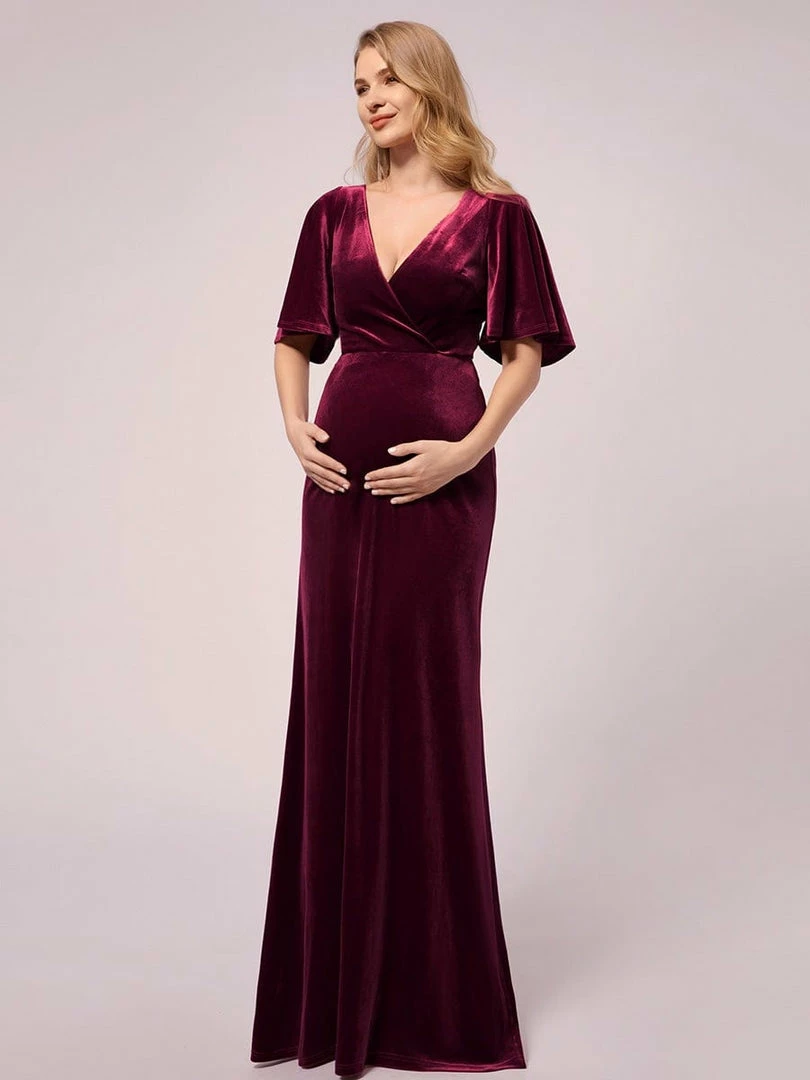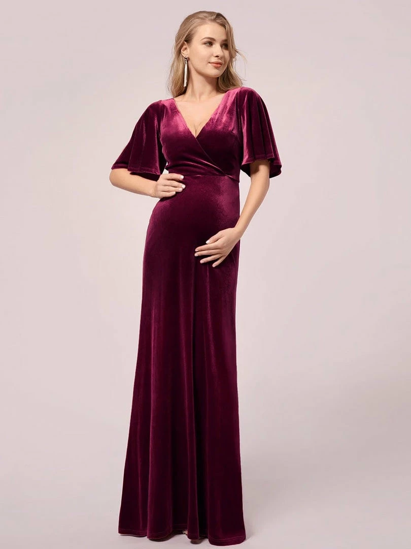 Ever-Pretty US Elegant Flare Sleeves Long Velvet Pregnancy Dress SHOP BY OCCASION