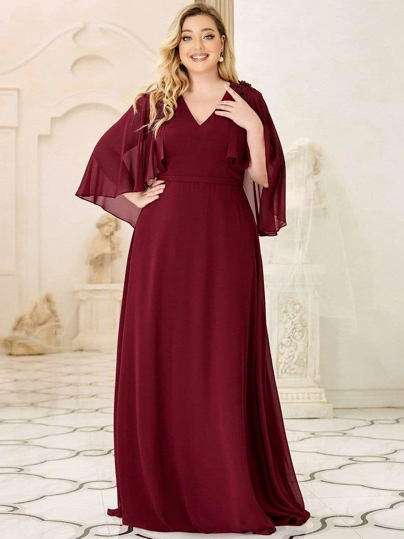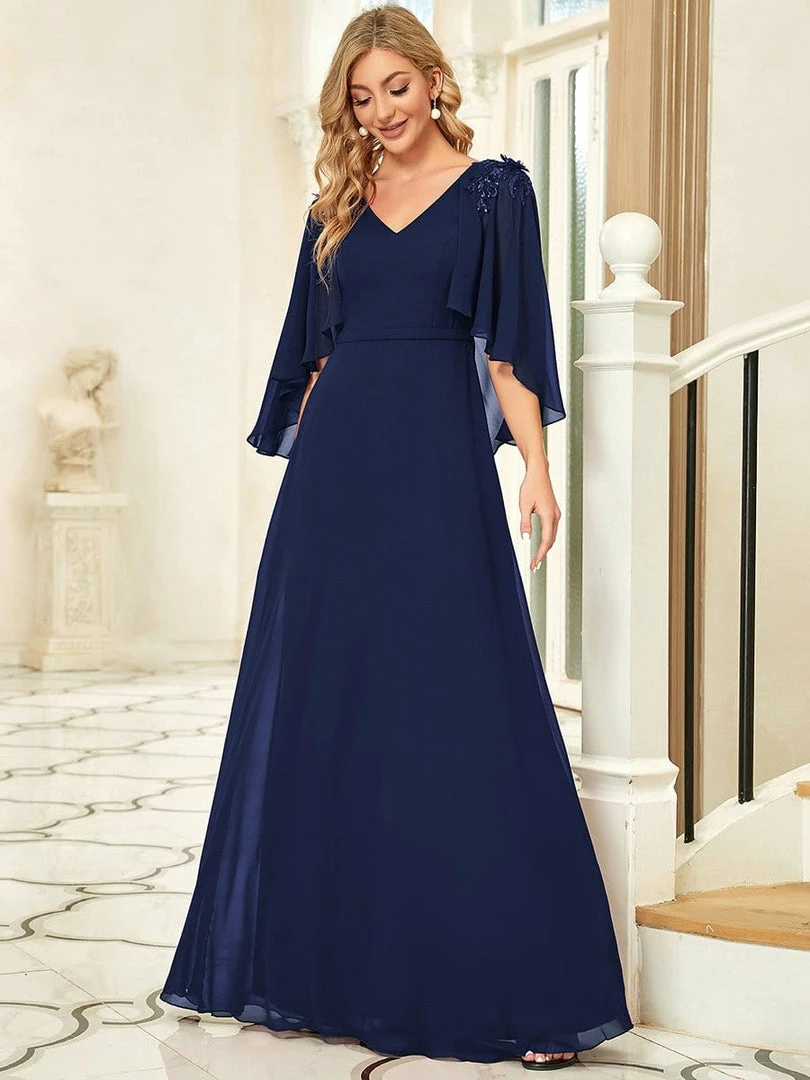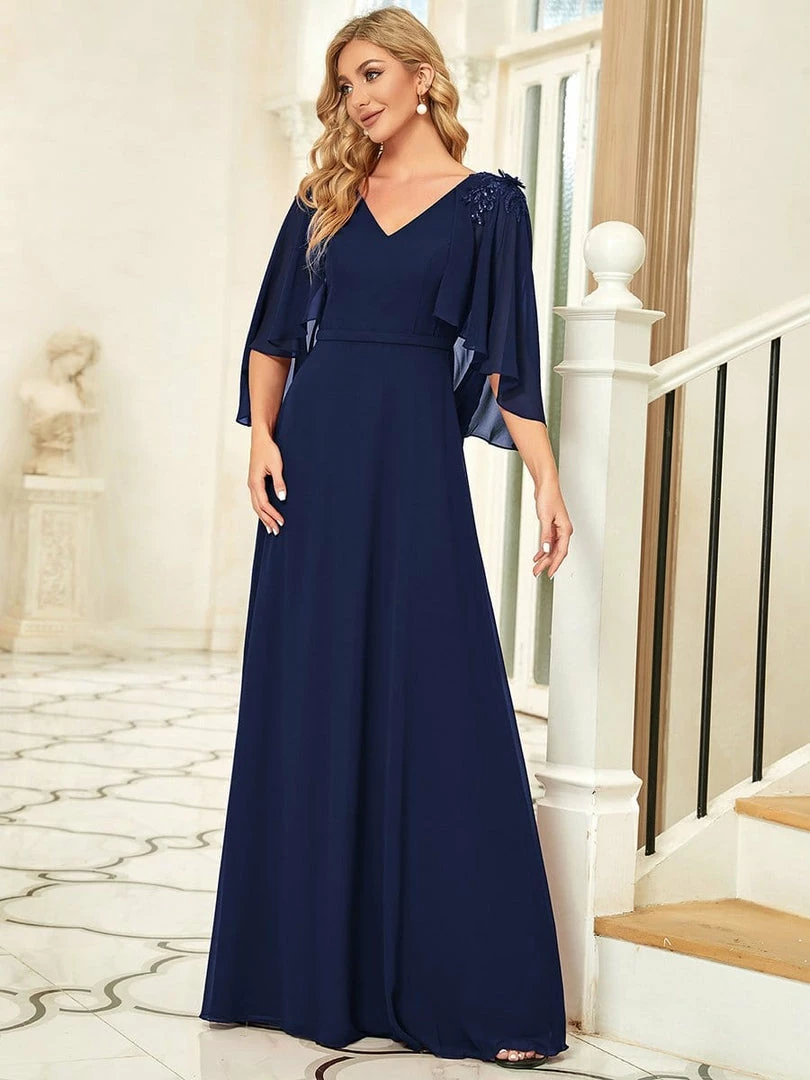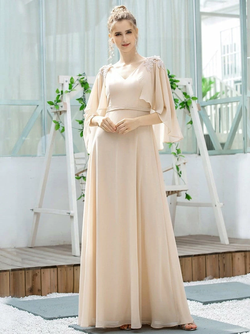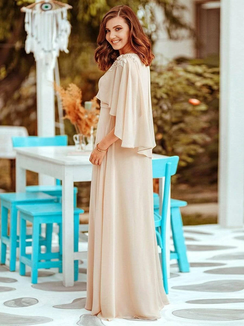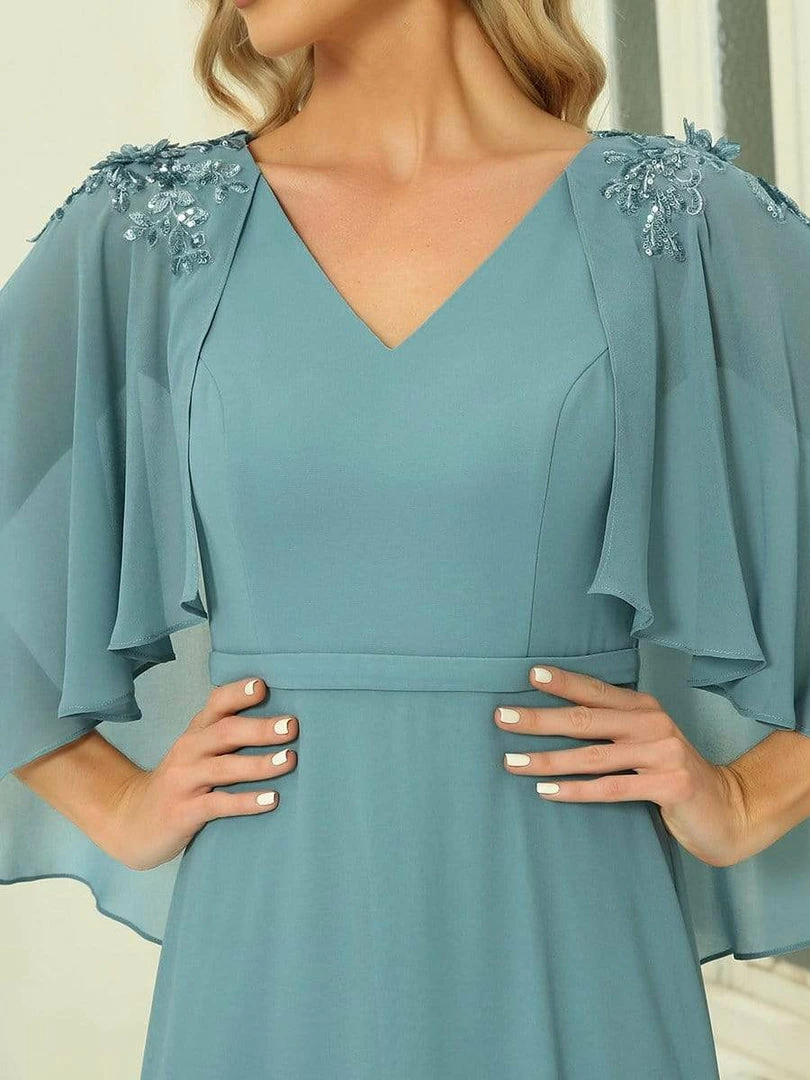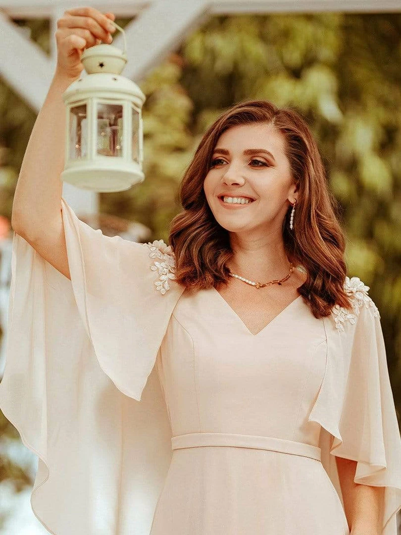 Featuring a classic V neckline, a flowy skirt and short sleeves, this elegant bridesmaid dress is a perfect choice for people who are looking for an elegant look. We think this romantic bridesmaid dress is perfect for evening party, cocktail, prom, homecoming, graduation, weddings, and any other formal affair!