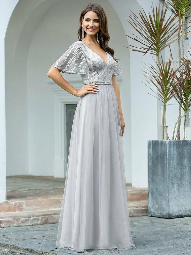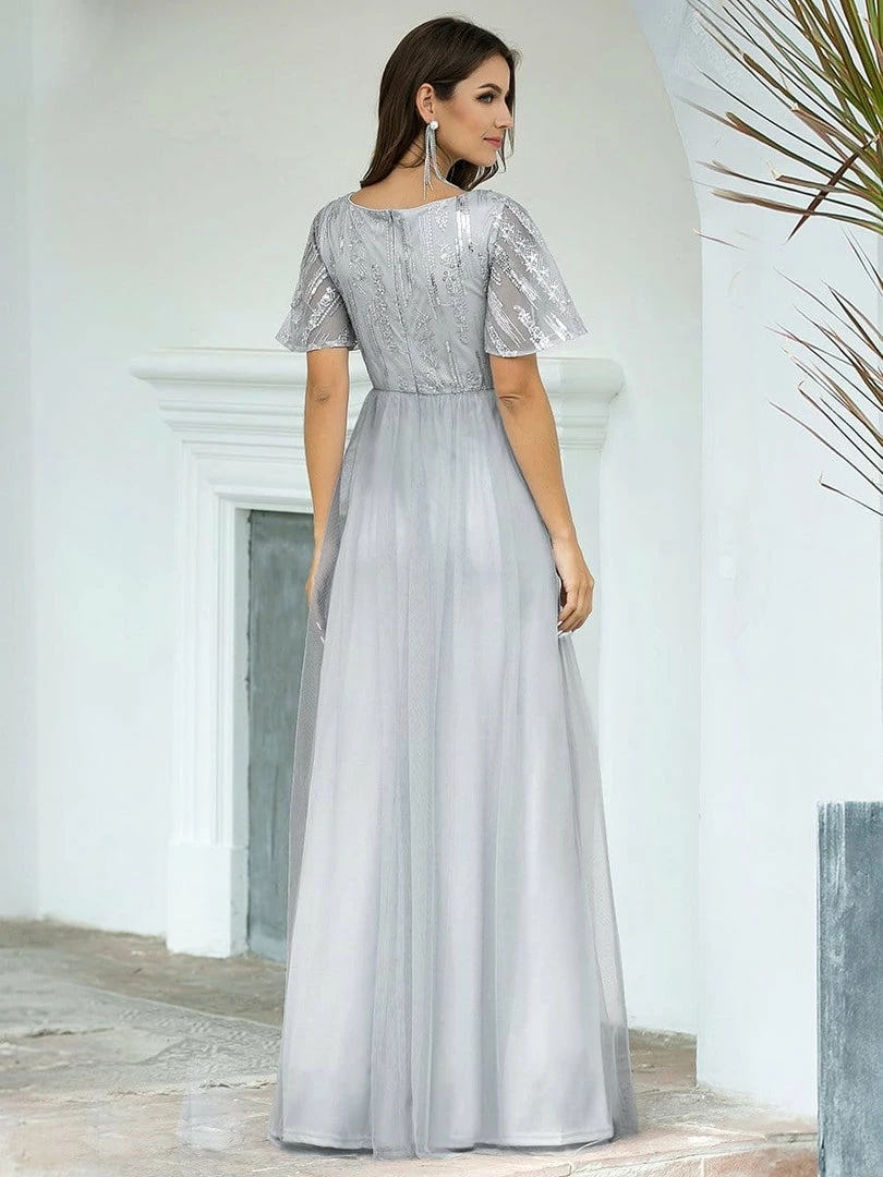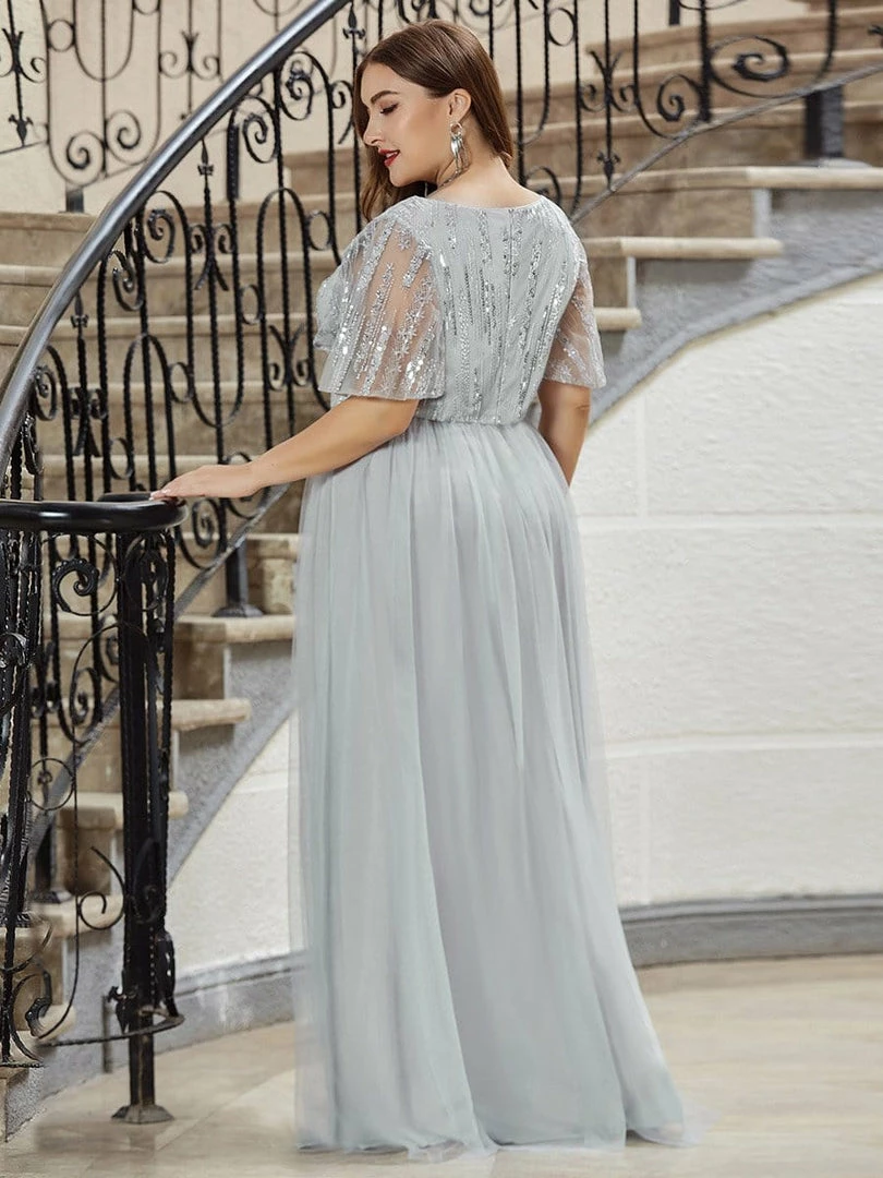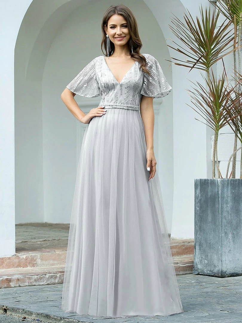 Wear this amazing long sleeve glitter evening dress and show off your sexy curves. The plunging v-neckline, sequins and fluttery sleeves will make every women jealous. We are sure that all eyes will be on you and you would look like a princess from a fairy tale. You would surely find your Prince if you haven’t found him yet. This gorgeous glitter v neck evening dress is perfect for all formal occasions, from evening party, cocktail, weddings to prom, homecoming and graduation!