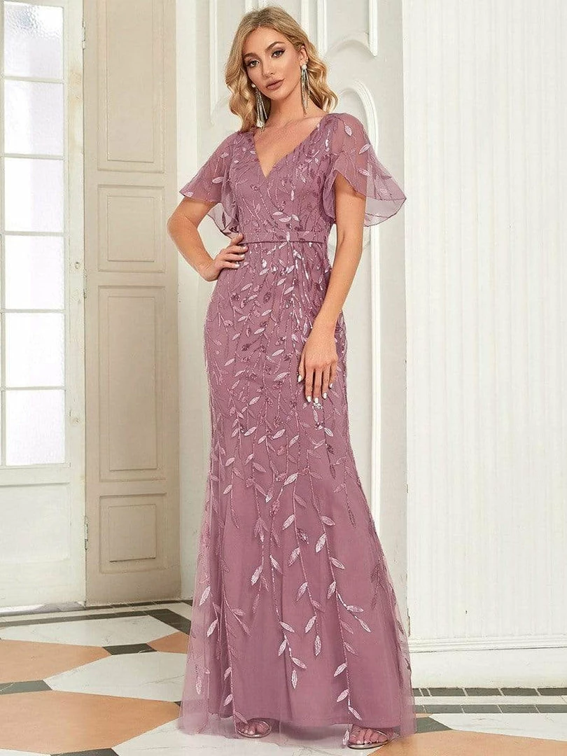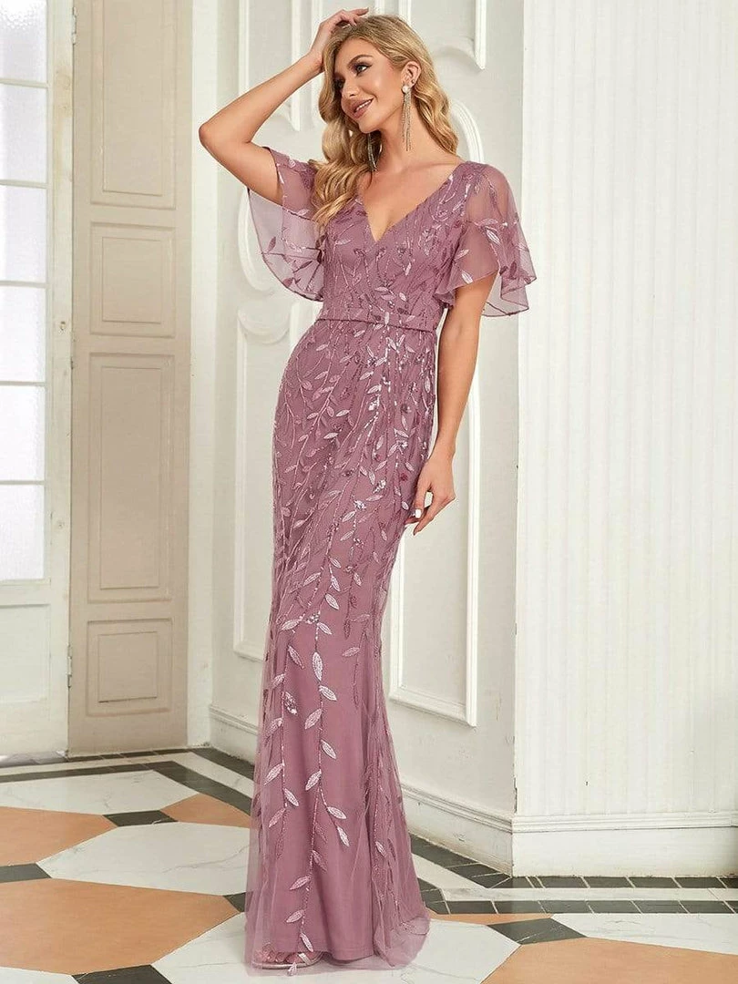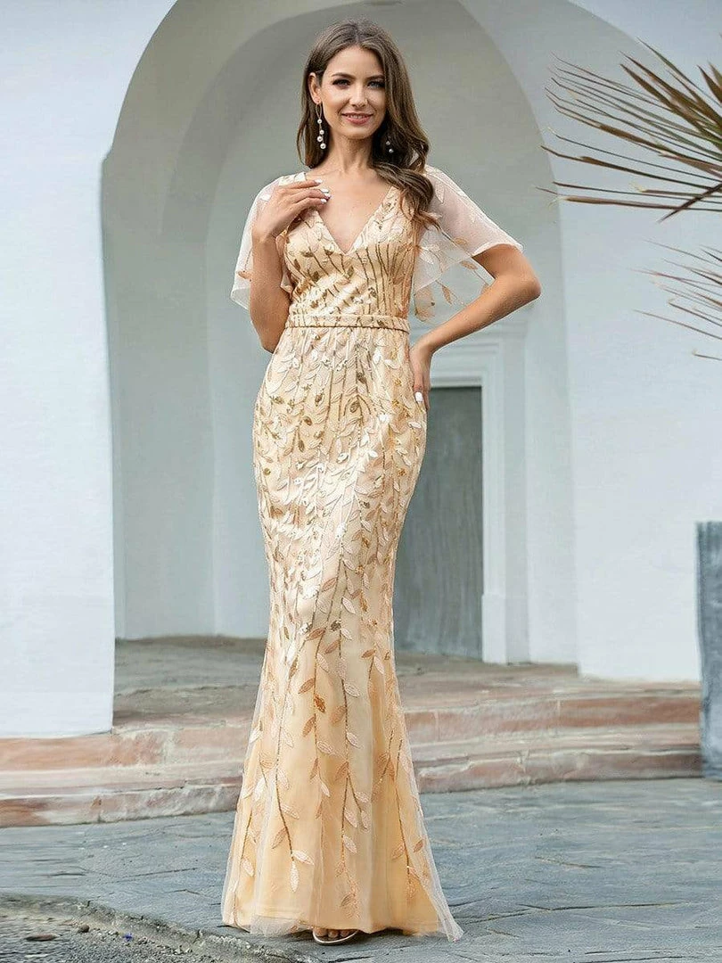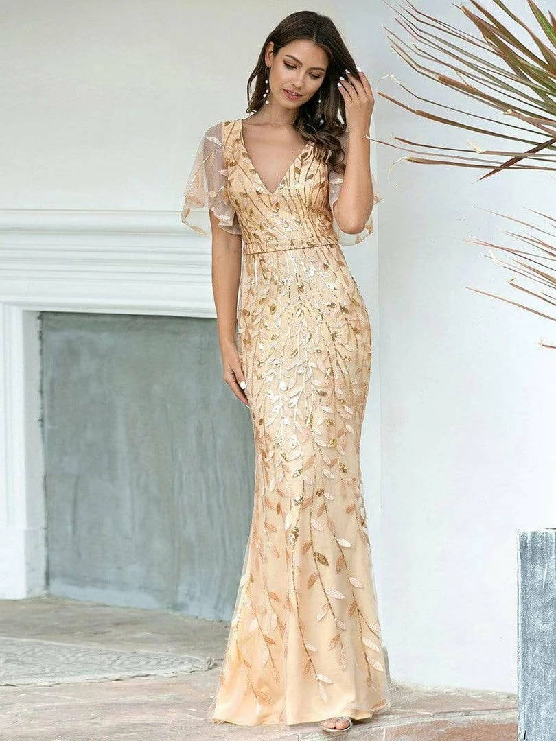 Want to look like a princess from a fairy tale? If yes, then this sequin party dress would surely make you look like one. It has a fishtail silhouette and beautiful ruffles sleeves. This Christmas party dress features a plunging v-neckline and a belt for the waistline. Wear this party dress and make every woman jealous. We think this gorgeous party dress is perfect for all formal occasions, from evening party, cocktail, weddings to prom, homecoming and graduation!