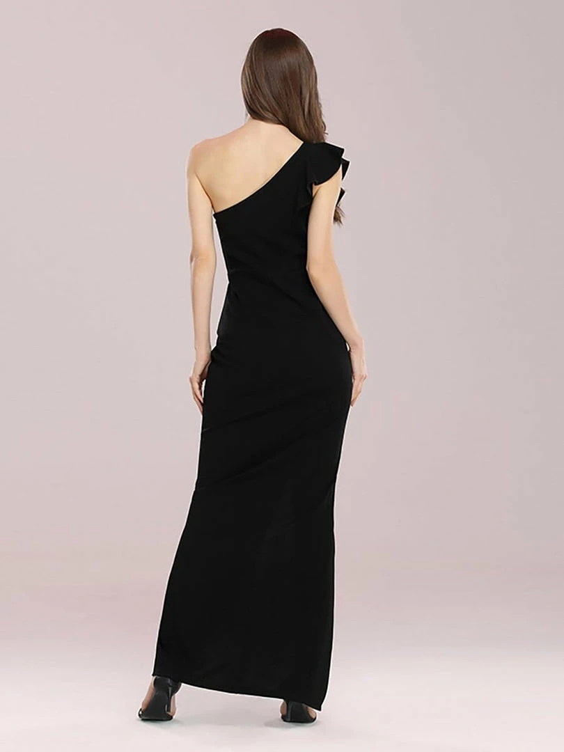 This evening dress will put you in the spotlight and you will look like one of the prettiest girls in the fairy tale movies. It features asymmetric shoulders and the ruffle design at the front look really great. This floor-length and split dress will surely make you look gorgeous and you will look like a super model. We think this gorgeous dress is perfect for all formal occasions, from evening party, cocktail, weddings to prom, homecoming, and graduation!
