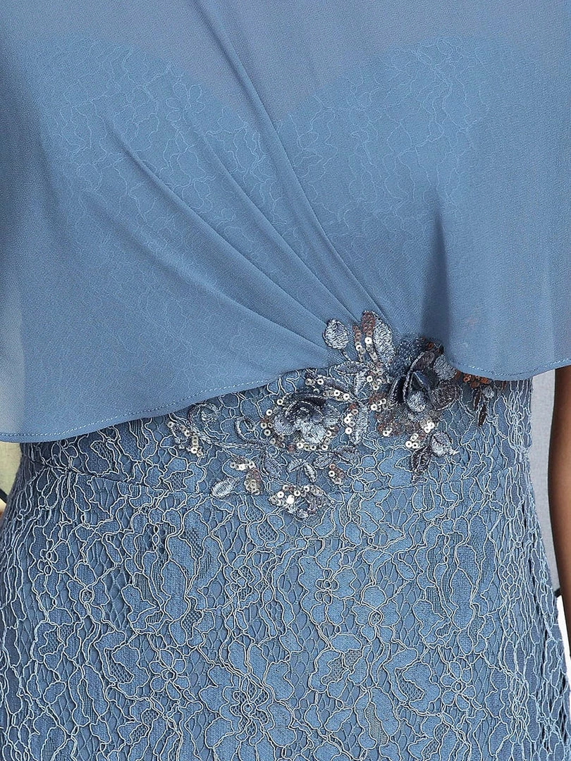 Celebrate your special moment wearing this mature mother of the bride dress featuring gorgeous all-over lace with a bodycon fishtail fit. A see-through chiffon coverup top with floral applique on the cinched waist gives it the perfect balance of stylish details and timeless sophistication. It’s perfect for evening party, cocktail, prom, homecoming, graduation, weddings, and any other formal affair!