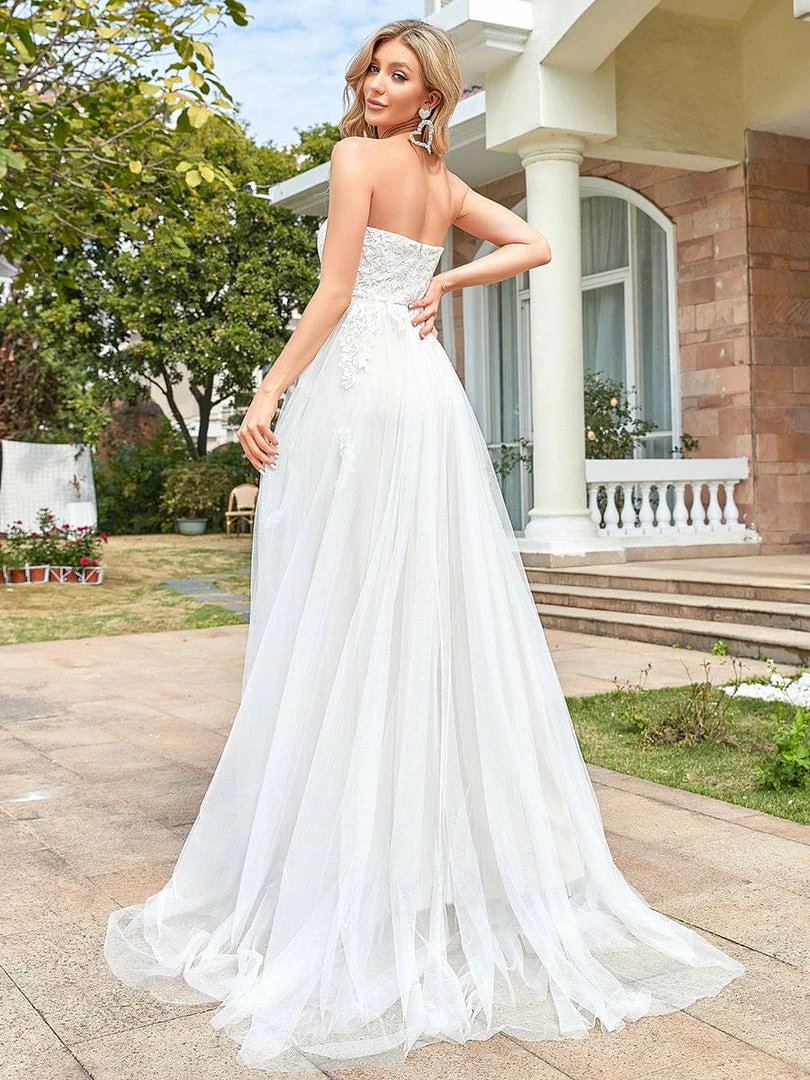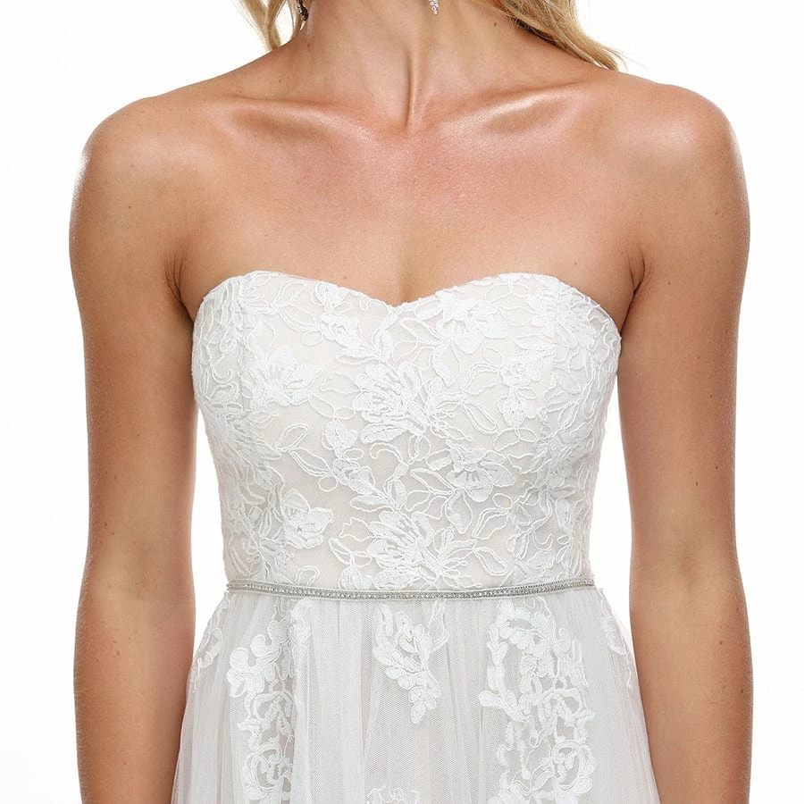 Make romantic dreams come to life with this stunning ball gown wedding dress. A sparkling sequin-embellished waist accentuates the silhouette with a bodycon fit. Flowing tulle layers and beautiful floral lace give this floor-length bridal gown a timeless style. A strapless sweetheart neckline adds sophistication, making it perfect for an indoor or outdoor wedding.