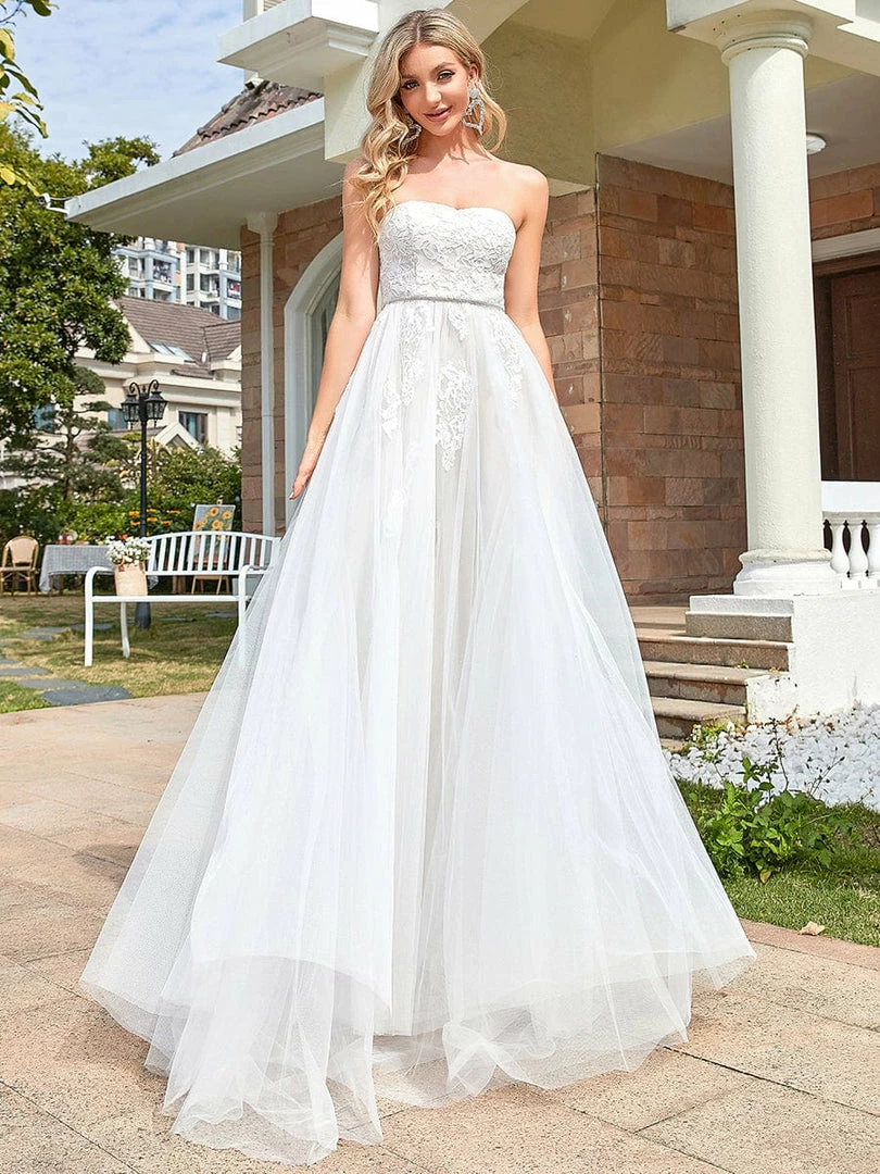 Occasion: indoor wedding, outdoor wedding, formal wedding, mature wedding dress, youthful wedding dress, beach wedding dress.