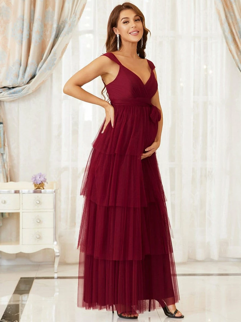 Celebrate your special moments in style wearing this layered tulle maternity dress features beautiful tiers of sheer material in an elegant column, giving this layered tulle maternity dress a formal. The cute pregnancy dresses top and cinched wrapped tie waist provide a flattering, comfortable fit, showing off your new baby bump in style.