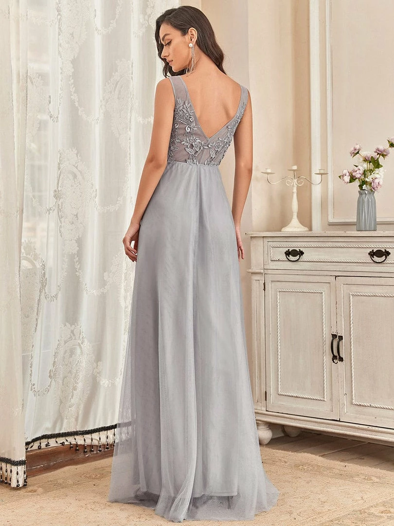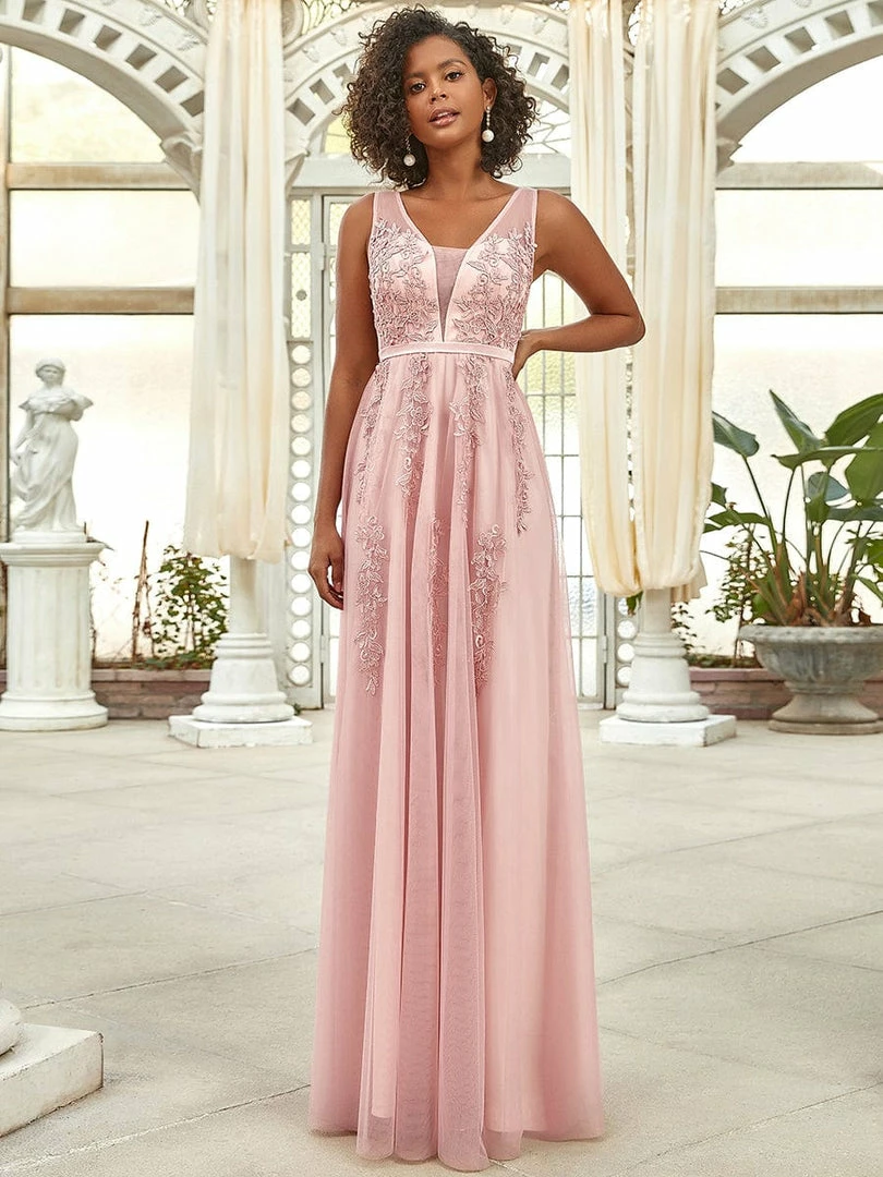 You’ll feel like a true princess in this ethereal evening dress. Gauzy, tulle creates a light flowy effect while delicate applique proves it really is all in the details. This beautiful formal dress is perfect for all formal occasions, from evening party, cocktail, weddings to prom, homecoming, and graduation!