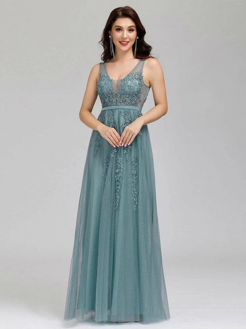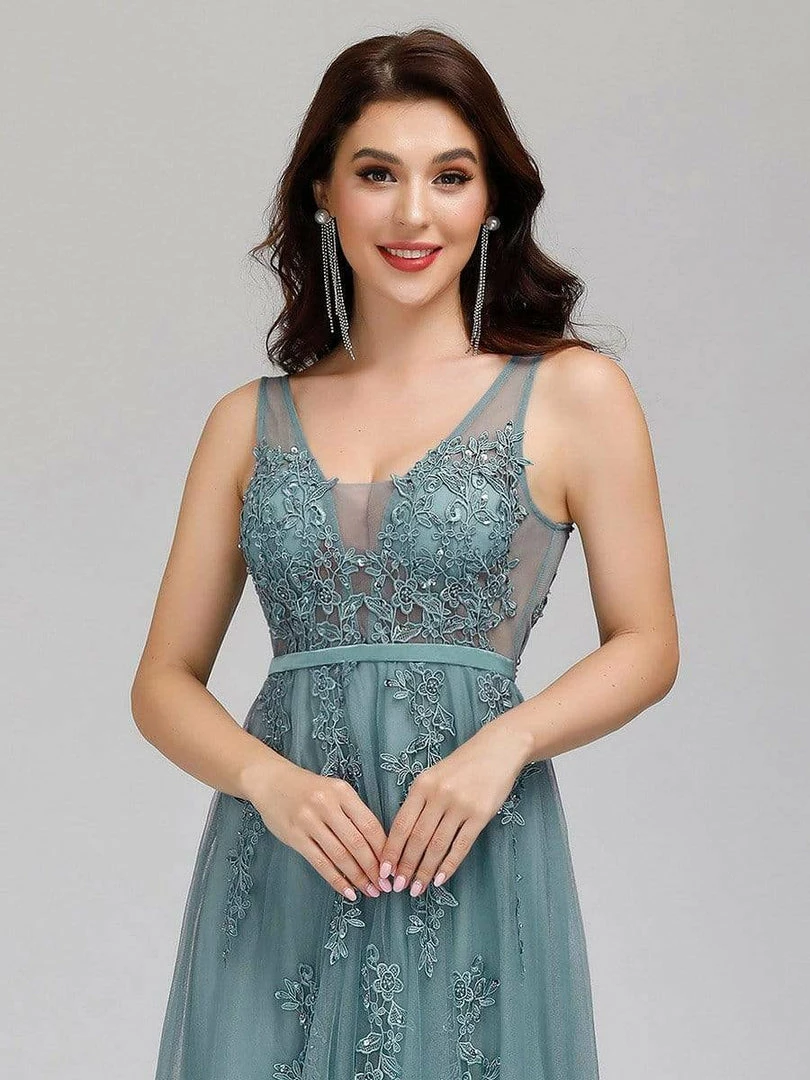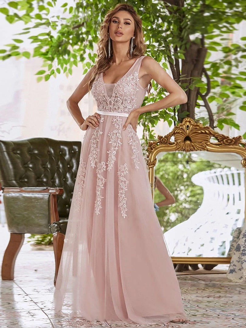 You’ll feel like a true princess in this ethereal prom gown. Gauzy, tulle creates a light flowy effect while delicate applique proves it really is all in the details. This beautiful ethereal prom dress is perfect for all formal occasions, from evening party, cocktail, weddings to prom, homecoming, and graduation!