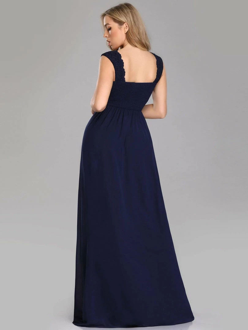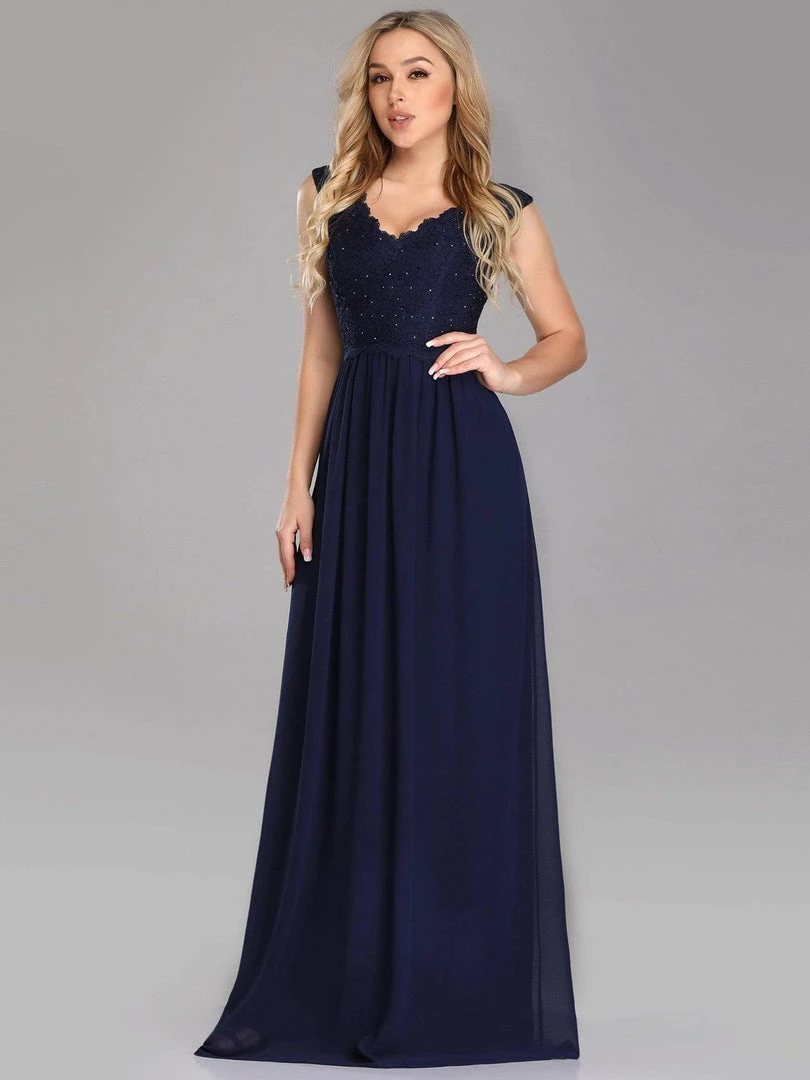 This long evening dress features a lace bodice embellished with small rhinestones.This simple silhouette makes this a versatile option for many events.Perfect for evening party,cocktail,prom,homecoming,graduation,weddings,and any other formal affair!