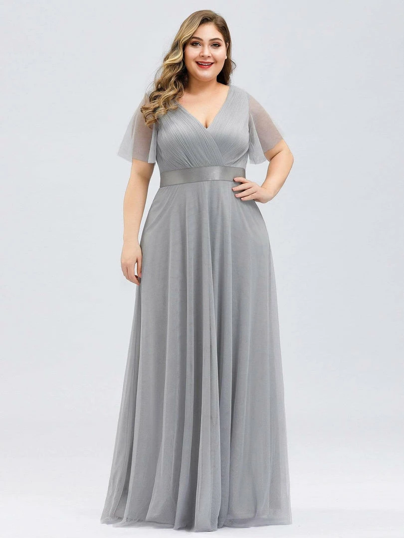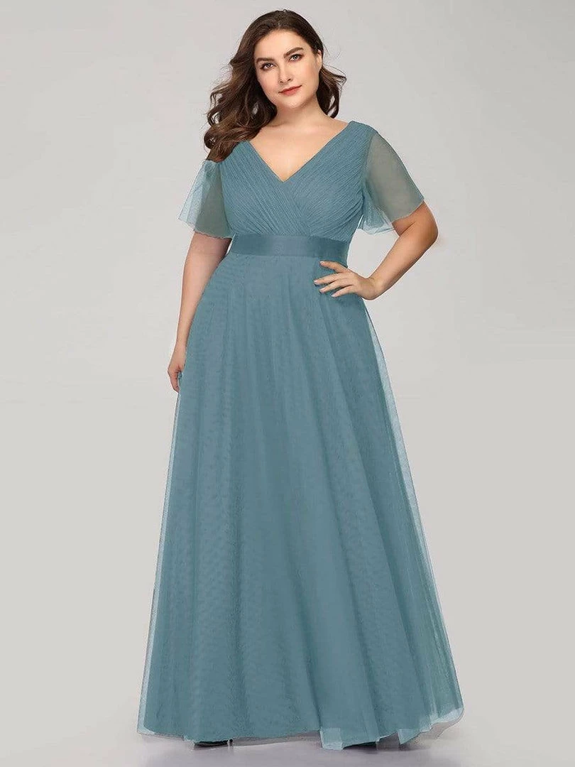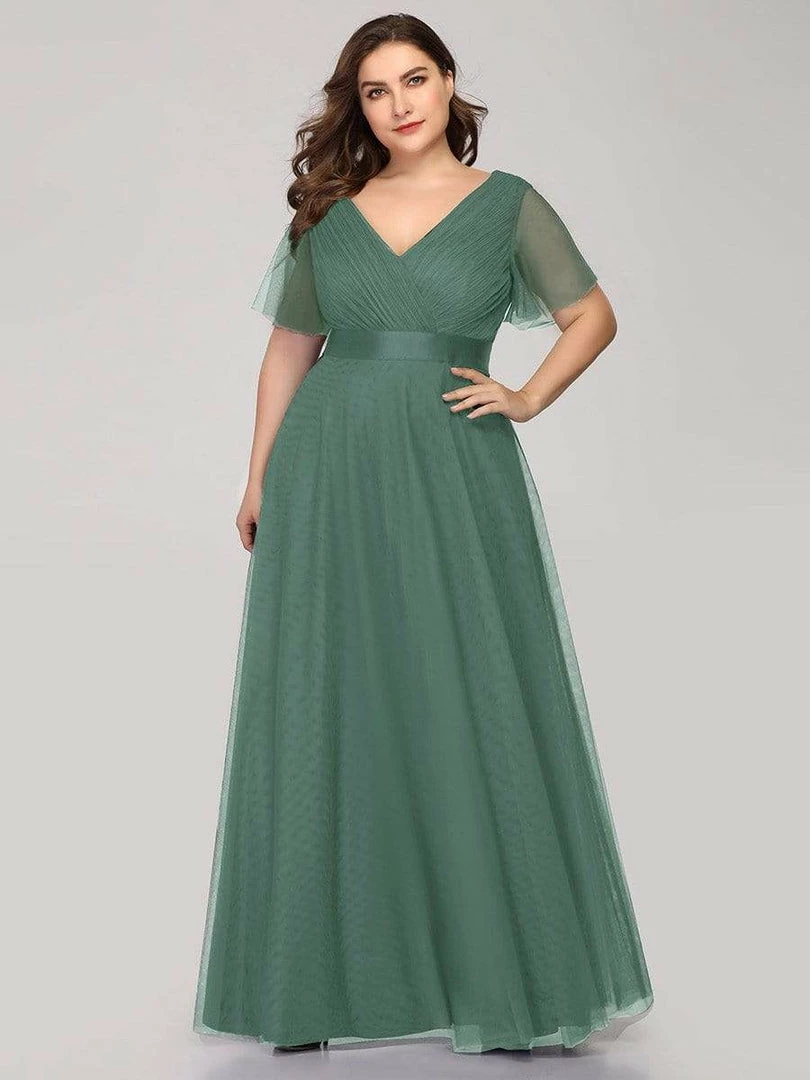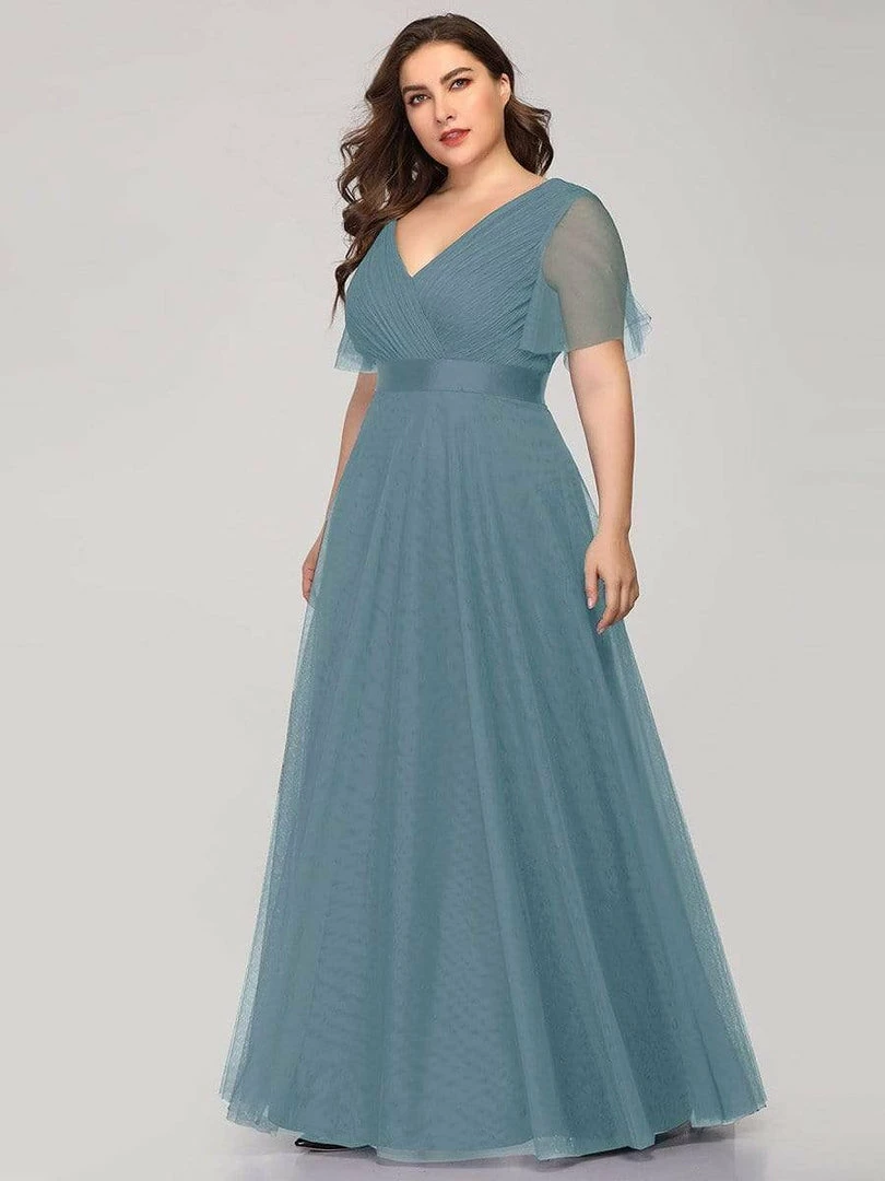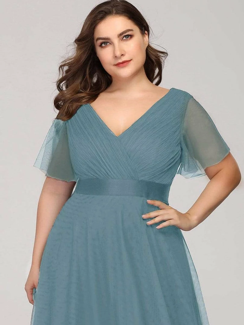 This romantic bridesmaid dress features a deep V neckline, empire waist flutter sleeves, and subtle high low tulle hemline. It is friendly to most body types. We think this elegant formal evening dress is perfect for all occasions, from evening party, cocktail, weddings to prom, homecoming and graduation!