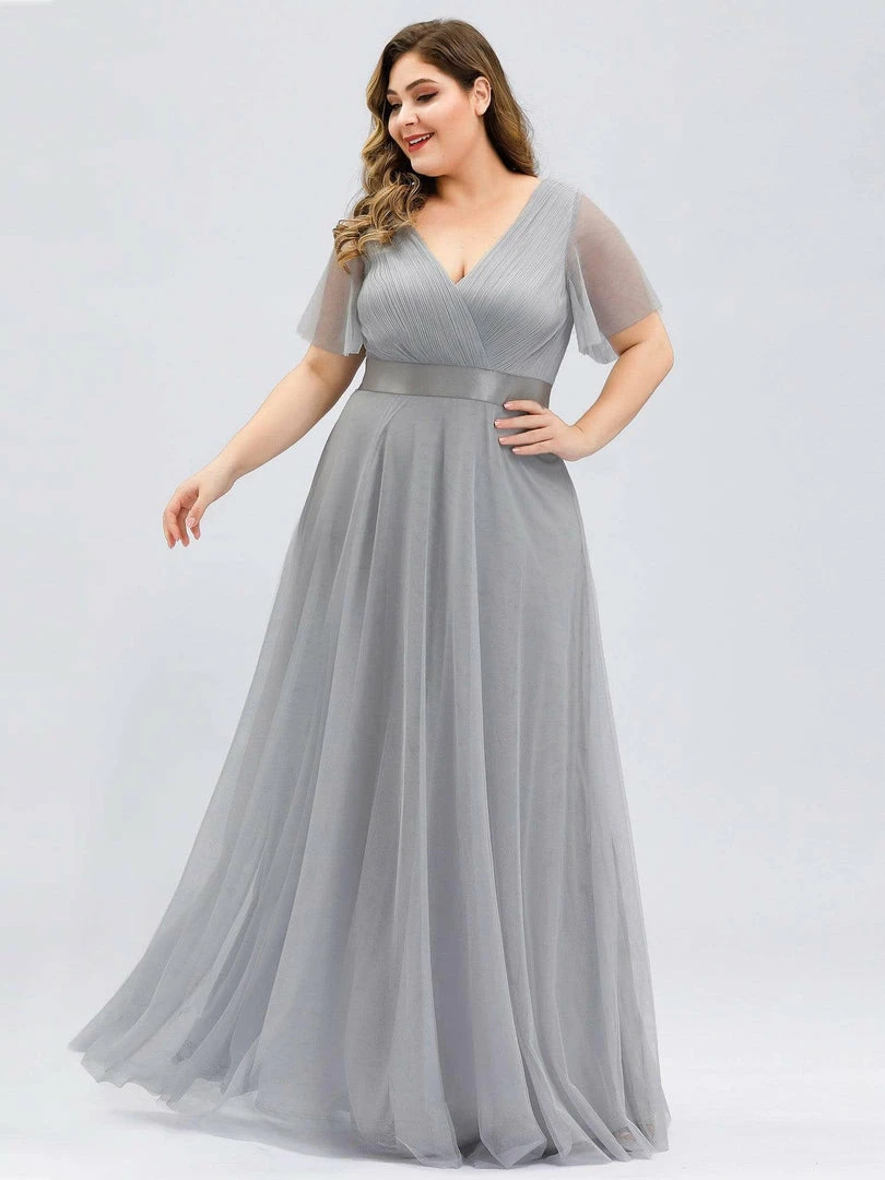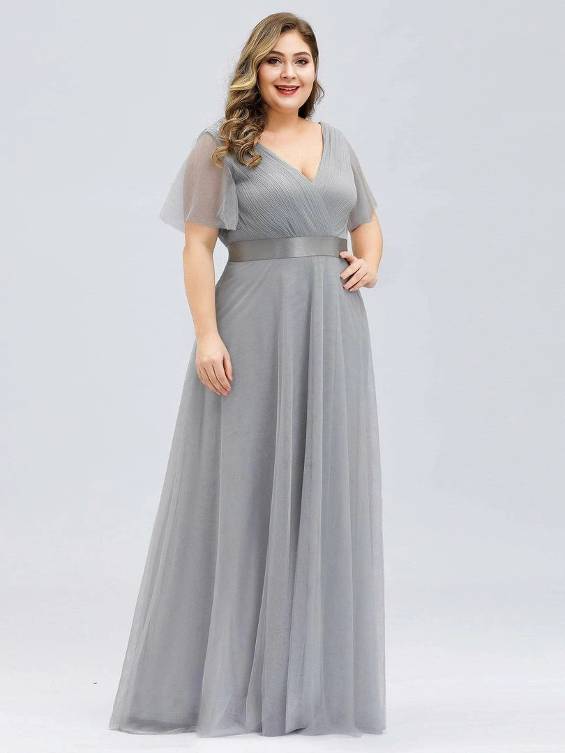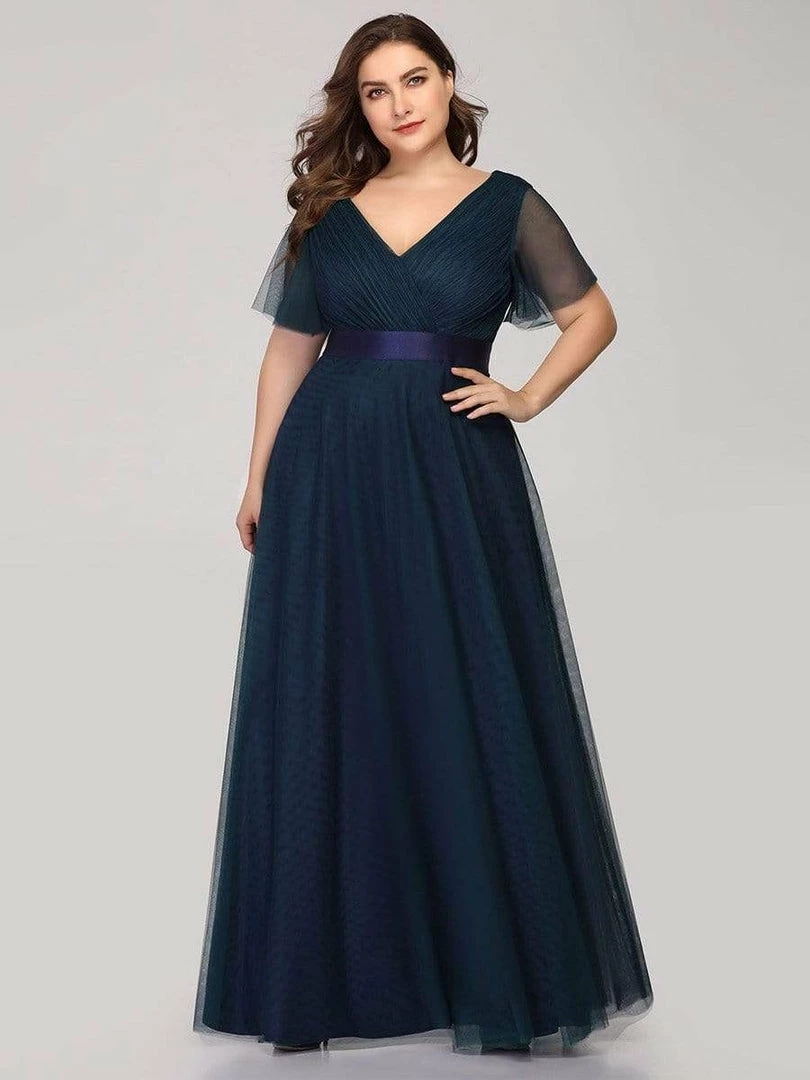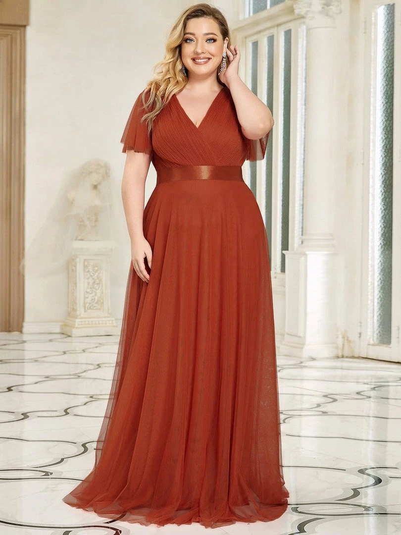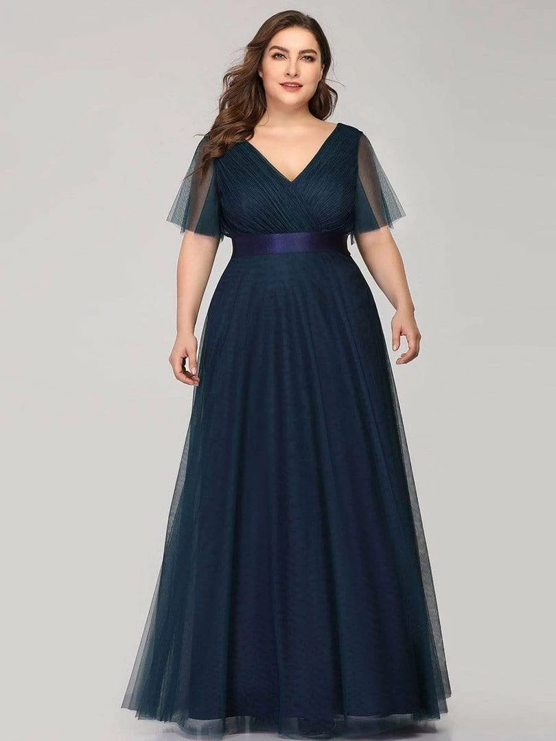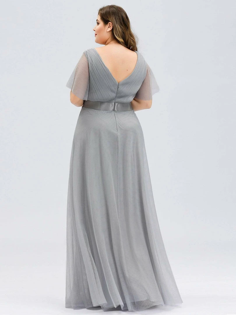 This romantic bridesmaid dress features a deep V neckline, empire waist flutter sleeves, and subtle high low tulle hemline. It is friendly to most body types. We think this elegant formal evening dress is perfect for all occasions, from evening party, cocktail, weddings to prom, homecoming and graduation!