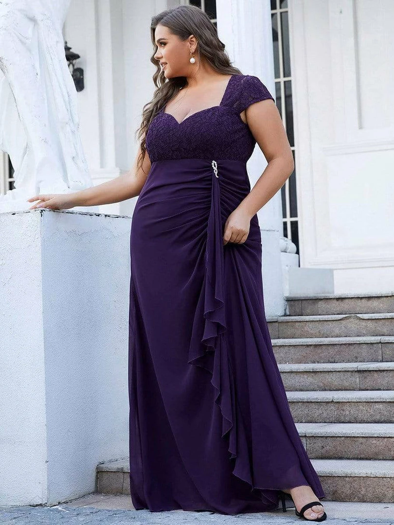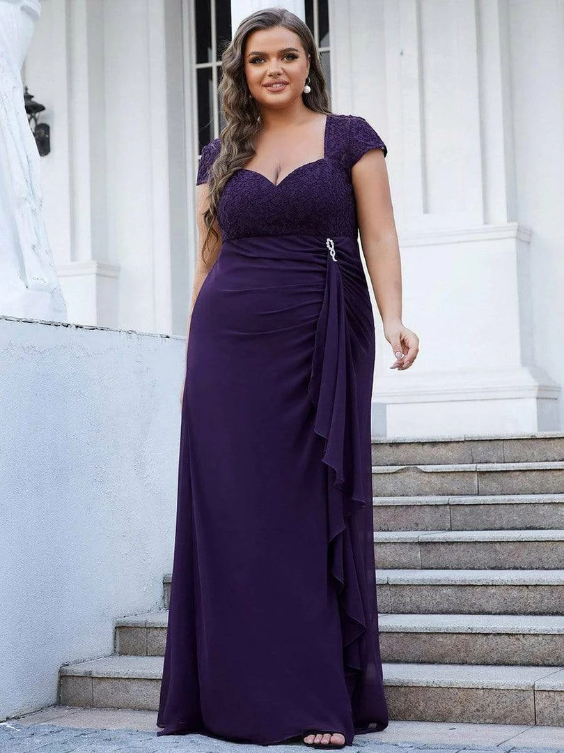Wear this gorgeous purple plus size formal mother of the bride dress for your next formal special event! The sweetheart neckline and cap sleeve design gives this stunning plus size mother of the bride dress a formal style, perfect for a wedding, banquet, concert, or dinner.