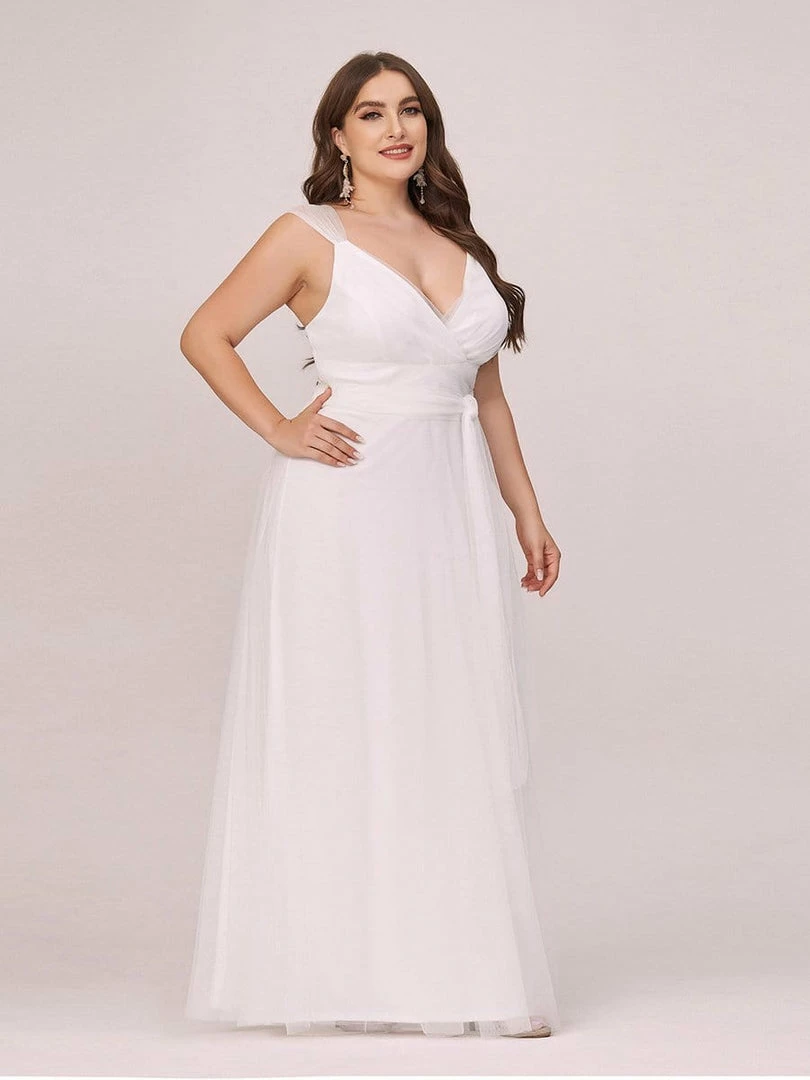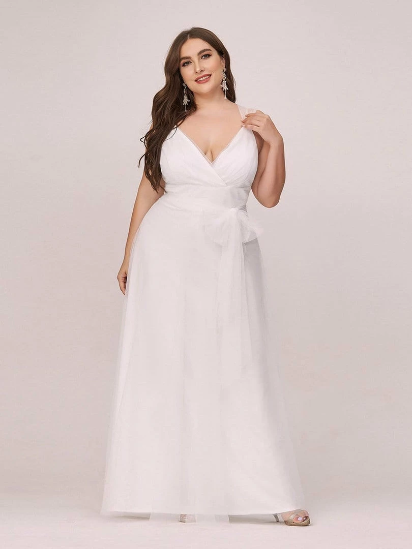 You’ll feel like a fairy princess in this delightful plus size simple tulle wedding dress! A full skirt give this tulle wedding dress a romantic air and you would not feel out of place running down castle steps in it. This tulle wedding dress is just designed for curvy girls to show off their charming figure.