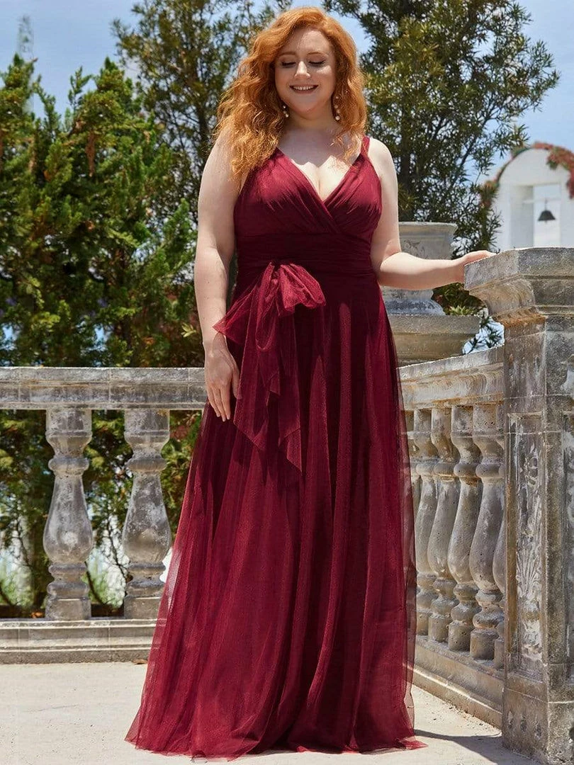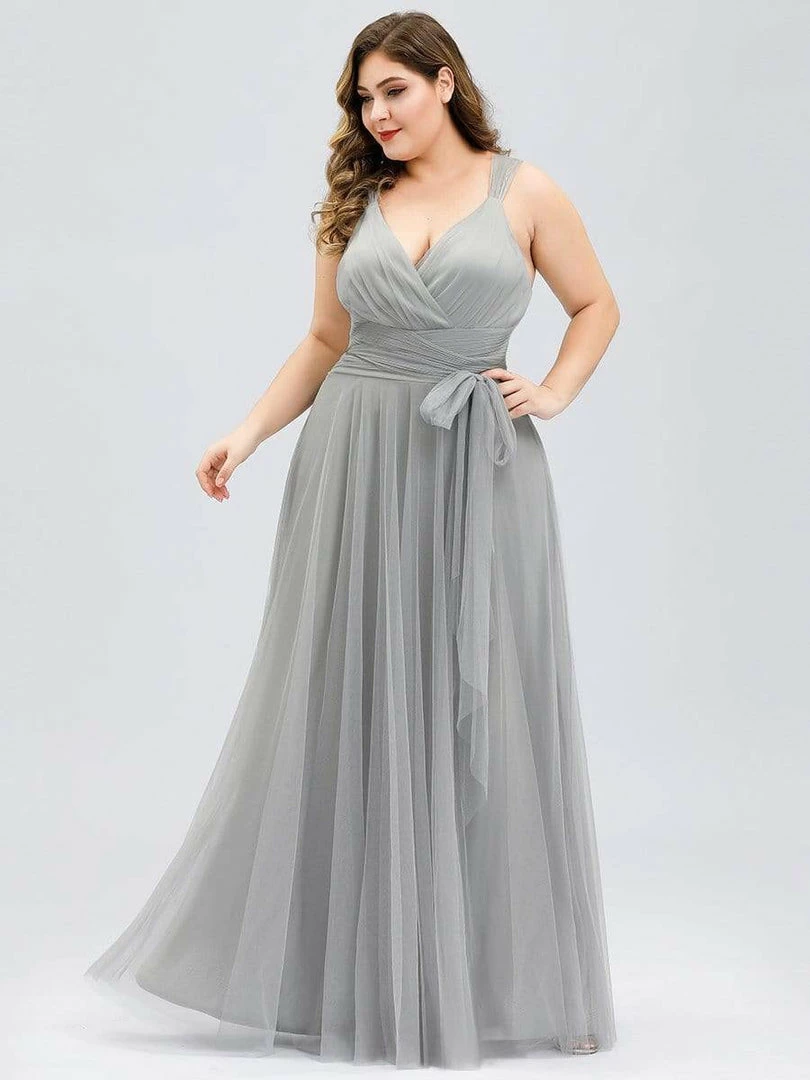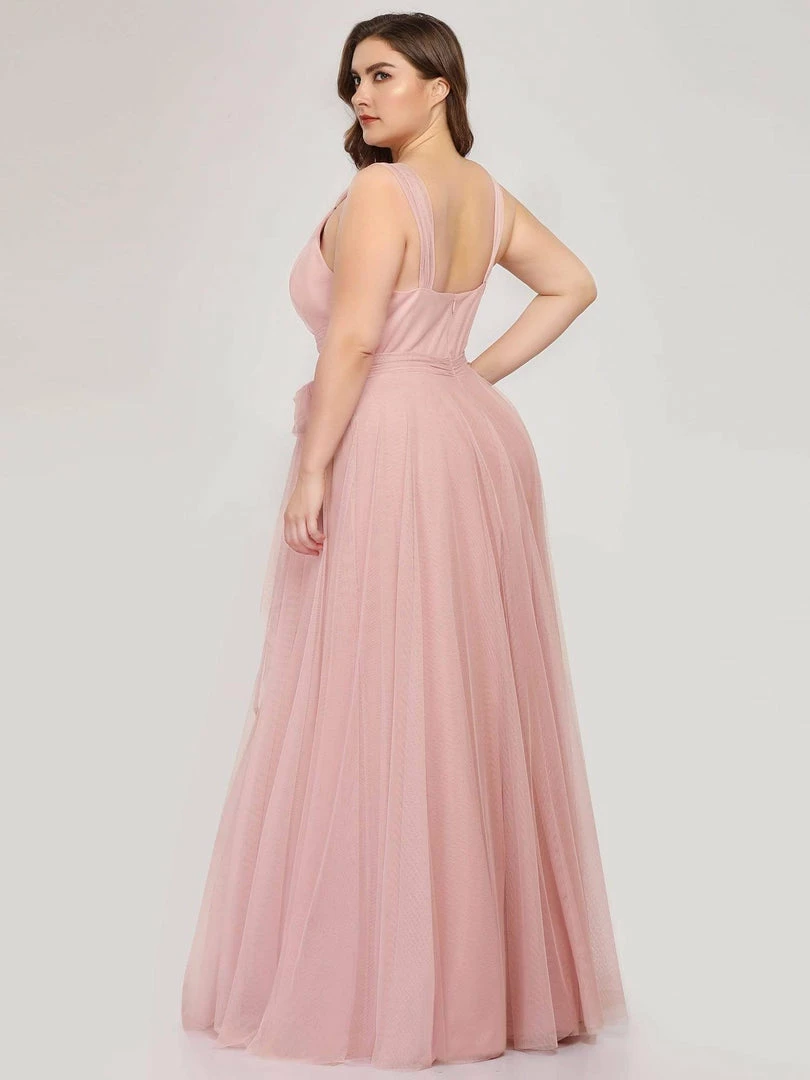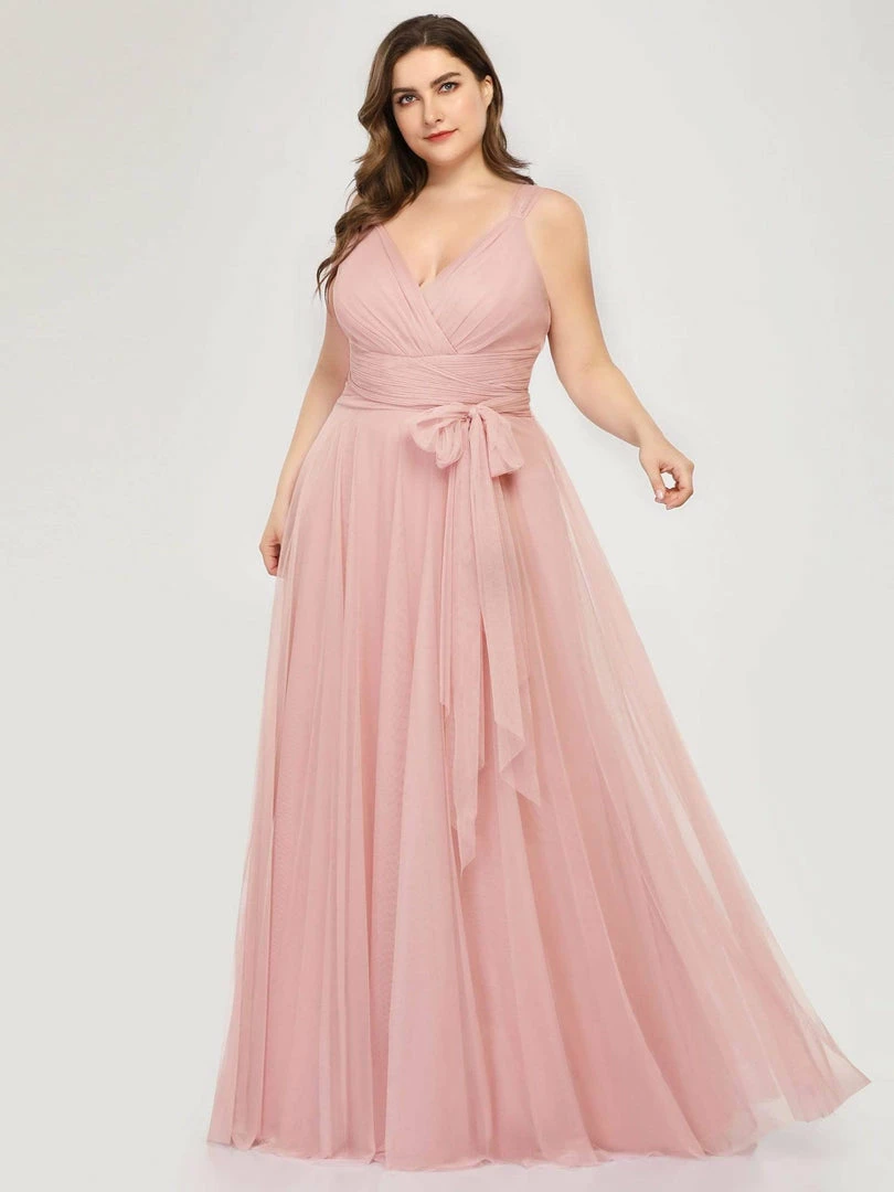 You’ll feel like a fairy princess in this delightful plus size tulle bridemsaid dress! Soft blush tones and a full skirt give this tulle bridesmaid dress for curve a romantic air and you would not feel out of place running down castle steps in it. This curve tulle bridesmaid dress is just designed for curvy girls to show off their charming figure. The plus size tulle dress is perfect for evening party, cocktail, prom, homecoming, graduation, weddings, and any other formal affair! Learn more about how to choose plus size formal dresses and find right styles for your curvy body, Please read “Ultimate Guide to Plus Size Dresses“!