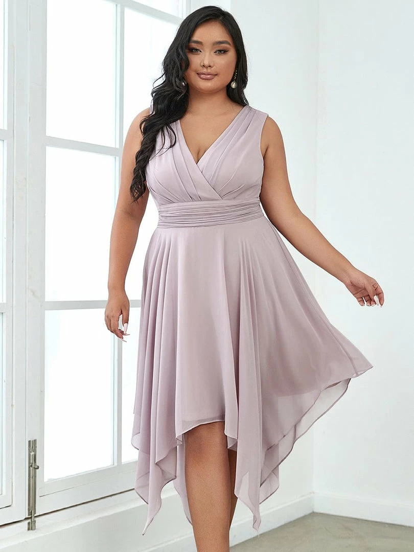 A super-stylish midi plus size bridesmaid dress is hard to resist especially when it has a ruched bodice and belt harmonized beautifully with each other. This double V-neck midi bridesmaid dress will shift your look beyond versatile. Go for this adorable short bridesmaid dress and make an ever-lasting impression on the guests at any event.