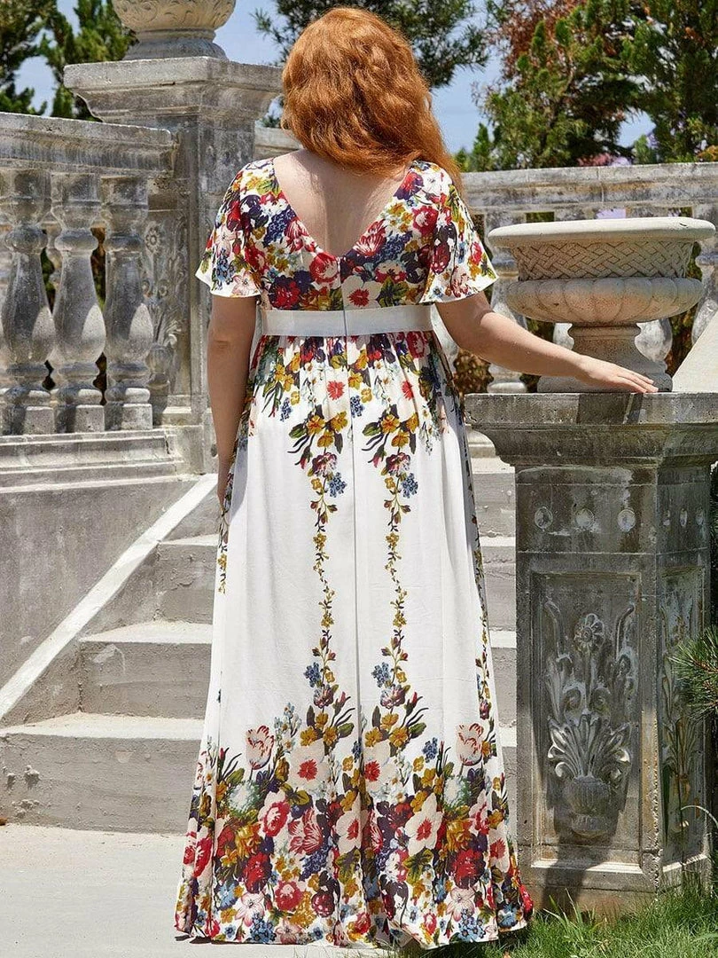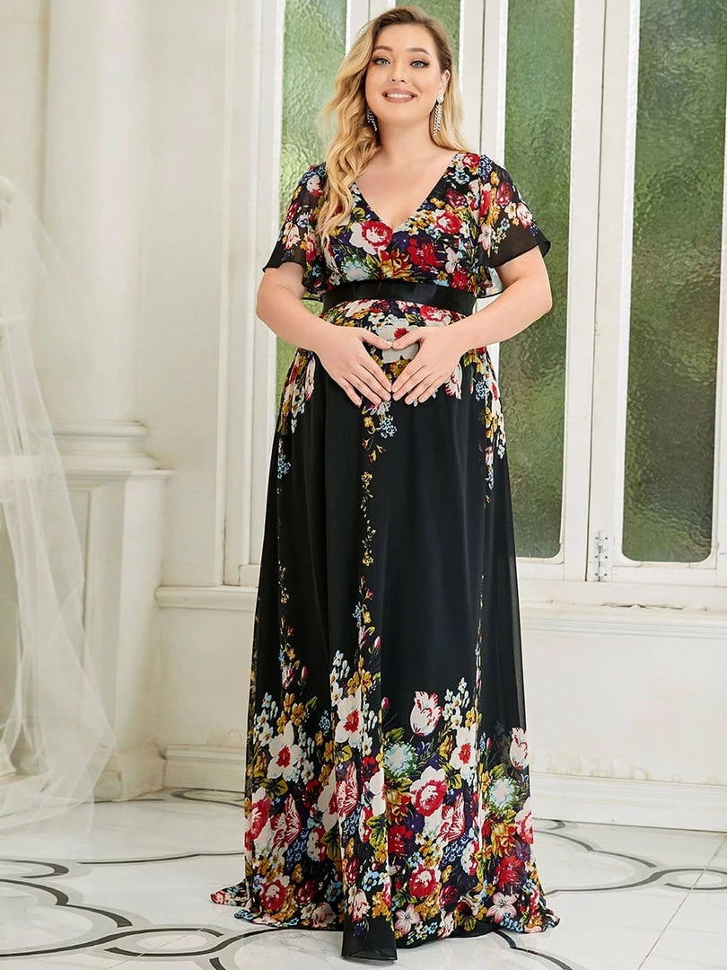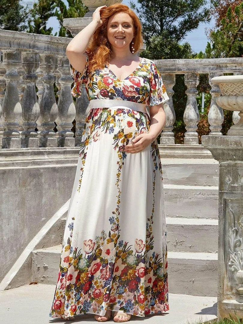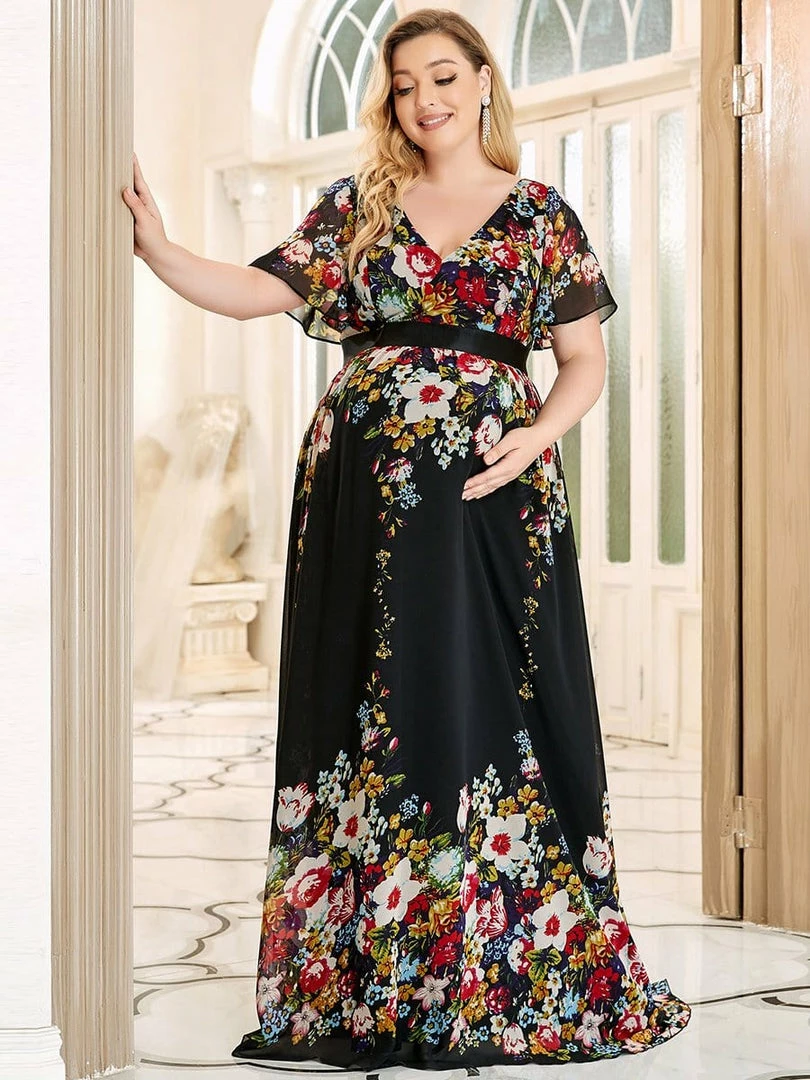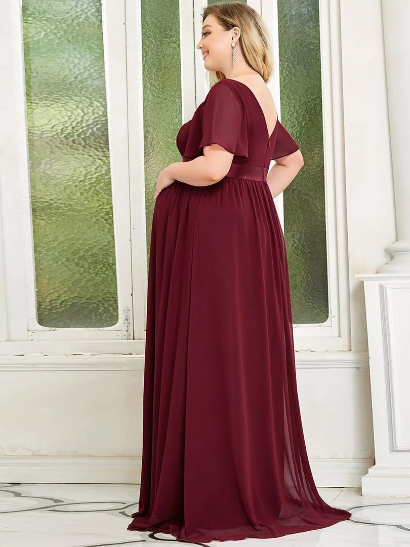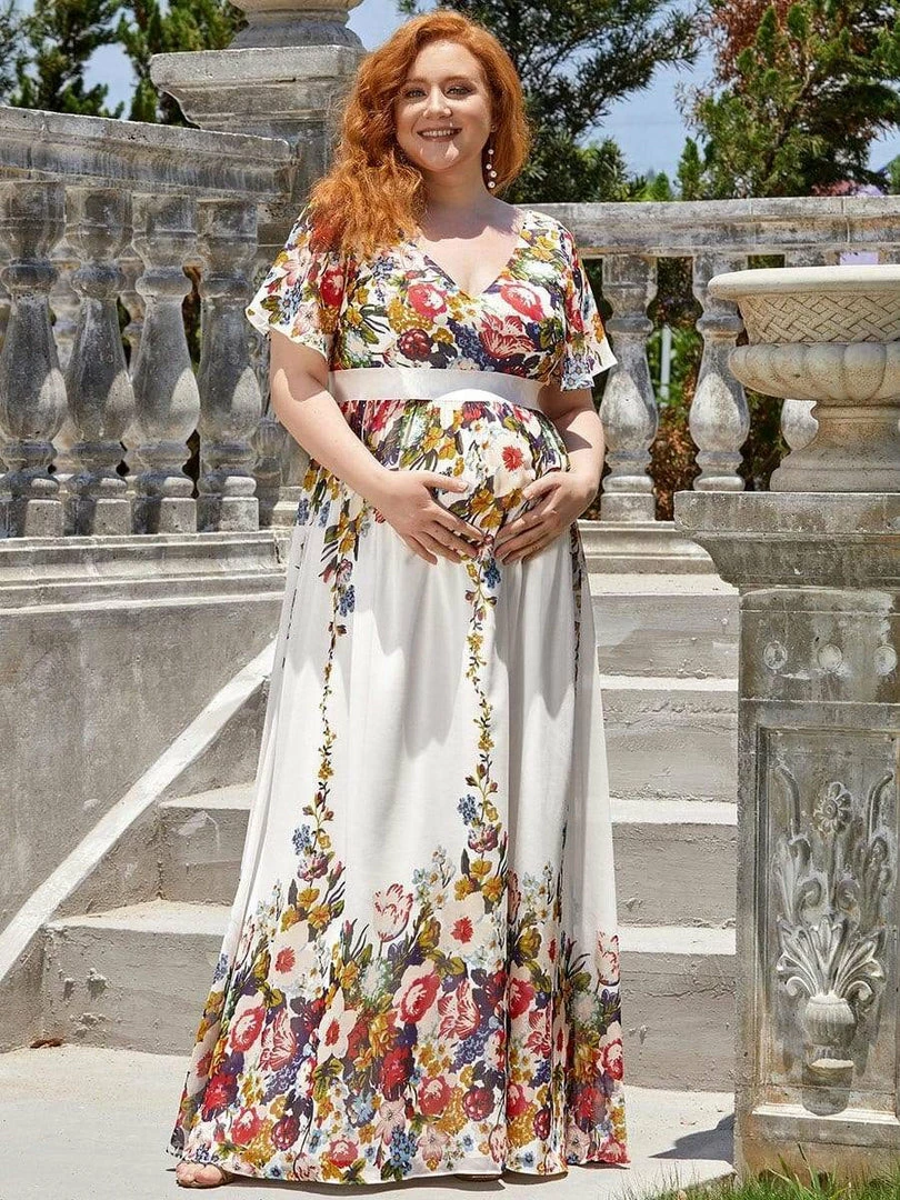 Featuring with a flattering and elegant A-line silhouette, along with a cinched ribbon waist, showing off your growing baby bump with understated sophistication. This unique floor-length bump friendly dress is the perfect selection for formal attire events. Mix and match this easy-to-wear bump friendly dress with different shoes.