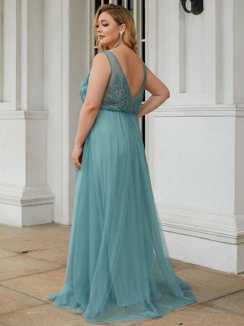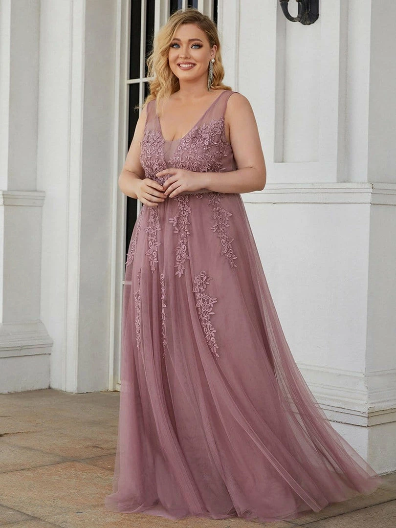 You’ll feel like a true princess in this ethereal plus size formal evening dress. Gauzy, tulle creates a light flowy effect while delicate applique proves it really is all in the details. This beautiful plus size evening dress for curve is perfect for all formal occasions, from evening party, cocktail, weddings to prom, homecoming, and graduation!