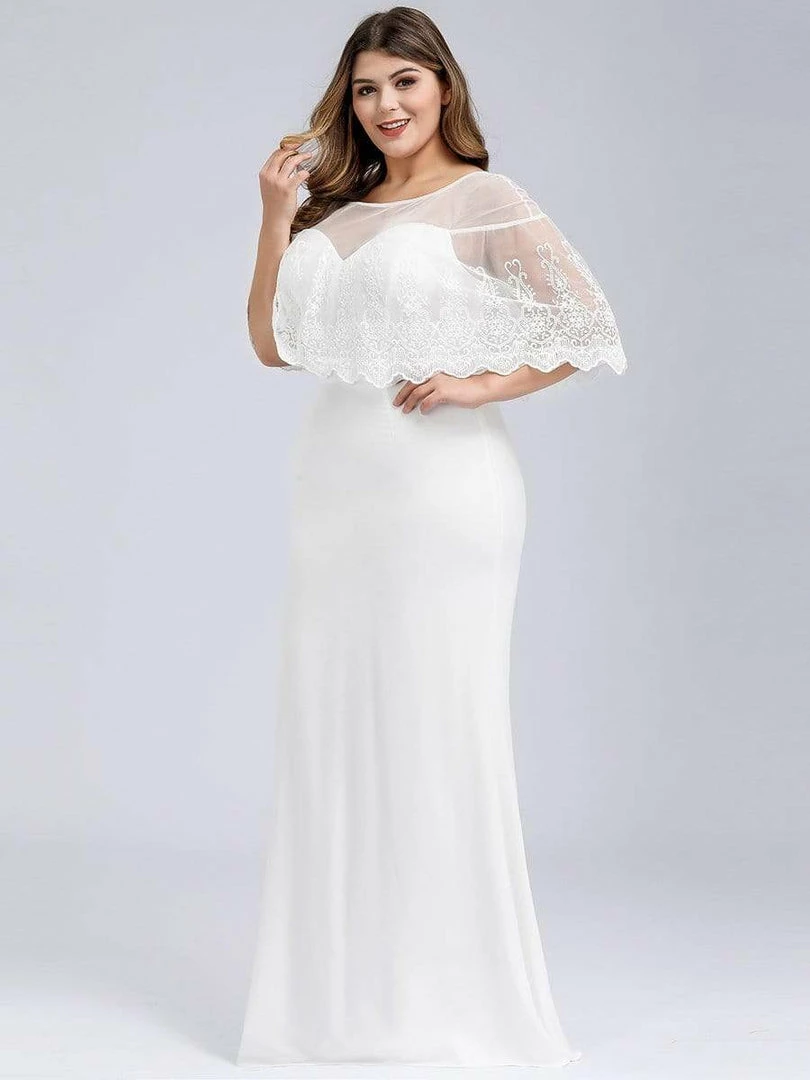 This simple yet amazing simple plus size wedding dress will take you in a fairy tale world as it will make you look fabulous. The lacy over the shoulder style is what makes this plus size bridal dress unique and cool. This plus size dress for brides is non-stretchable and has a round neck. It looks flattering from every angle as it is sewn to a standard of perfection.