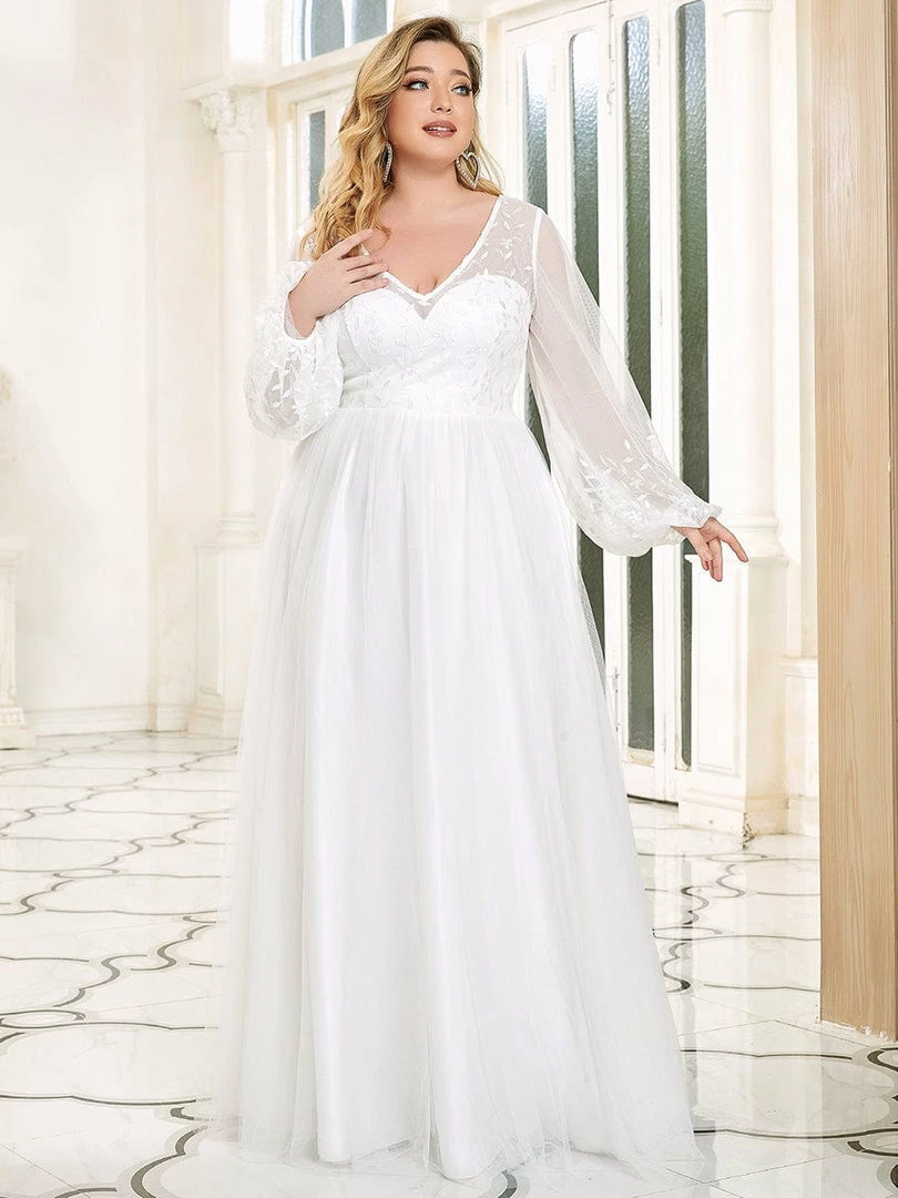 All eyes are on you for your special day wearing this remarkable long puff sleeves wedding dress! A romantic sweetheart neckline with sheer overlay and feminine floral applique gives this floor-length outdoor bridal gown vintage vibes. Long puffed sleeves and stunning layers of fabric leave a long-lasting impression of unique elegance. It’s perfect for evening party, cocktail, prom, homecoming, graduation, weddings, and any other formal affair!