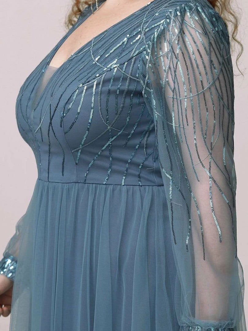 This is one of the most classiest maxi evening dress you will ever see. This sheer long sleeve evening dress is so beautiful that even cindrella would want to skip hers and wear this one. It features deep V-neck and see-through full sleeves. The paillete designing on the maxi evening dress looks really alluring. This pretty maxi evening dress really looks flattering from every angle. We think this gorgeous long evening dress is perfect for all formal occasions, from evening party, cocktail, weddings to prom, homecoming, and graduation!