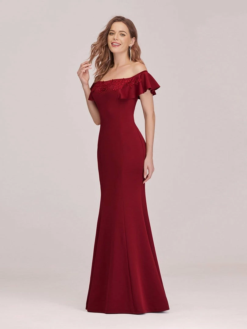 A simple and elegant dress is all you want to get everyone’s attention. Looking for one? Here is the most elegant dress. It is an off-shoulder dress and has a fishtail silhouette. You can show off your sexy collar bones by wearing this dress. The hot drill decoration on the middle of the neckline has eye-catching sparkle. We think this gorgeous dress is perfect for all formal occasions, from evening party, cocktail, weddings to prom, homecoming, and graduation!