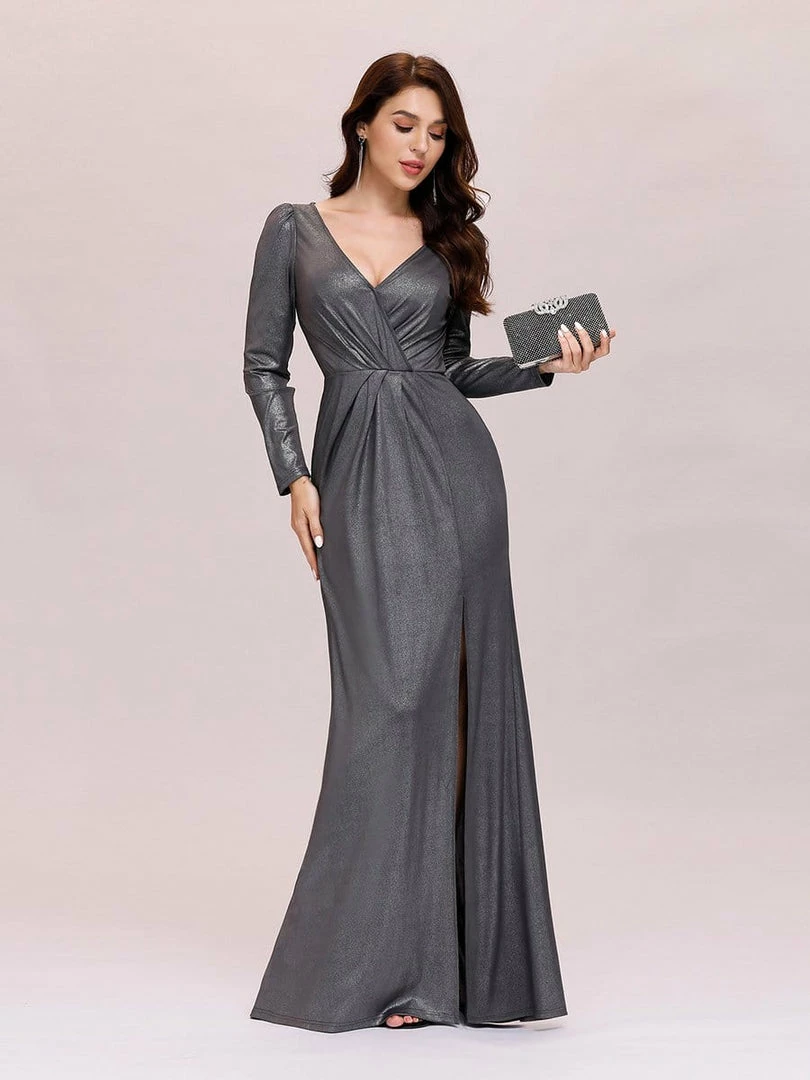 Are you looking for a dress that will make you look like a supermodel? If yes, then this split dress is solely made for you. It features a deep V-neck and tight long sleeves. We can assure you that all eyes will be on you and you will steal all the limelight. We think this gorgeous dress is perfect for all formal occasions, from evening party, cocktail, weddings to prom, homecoming, and graduation!