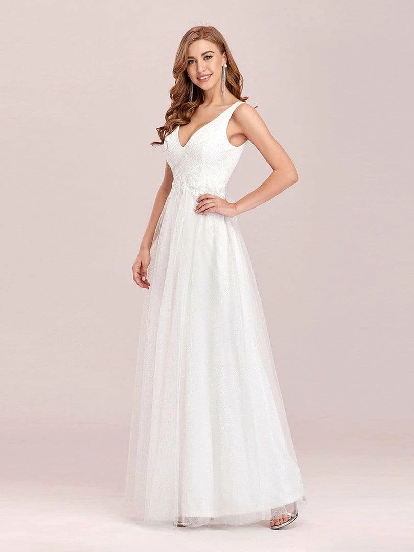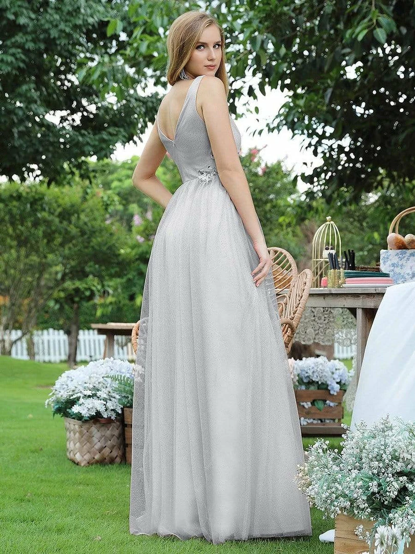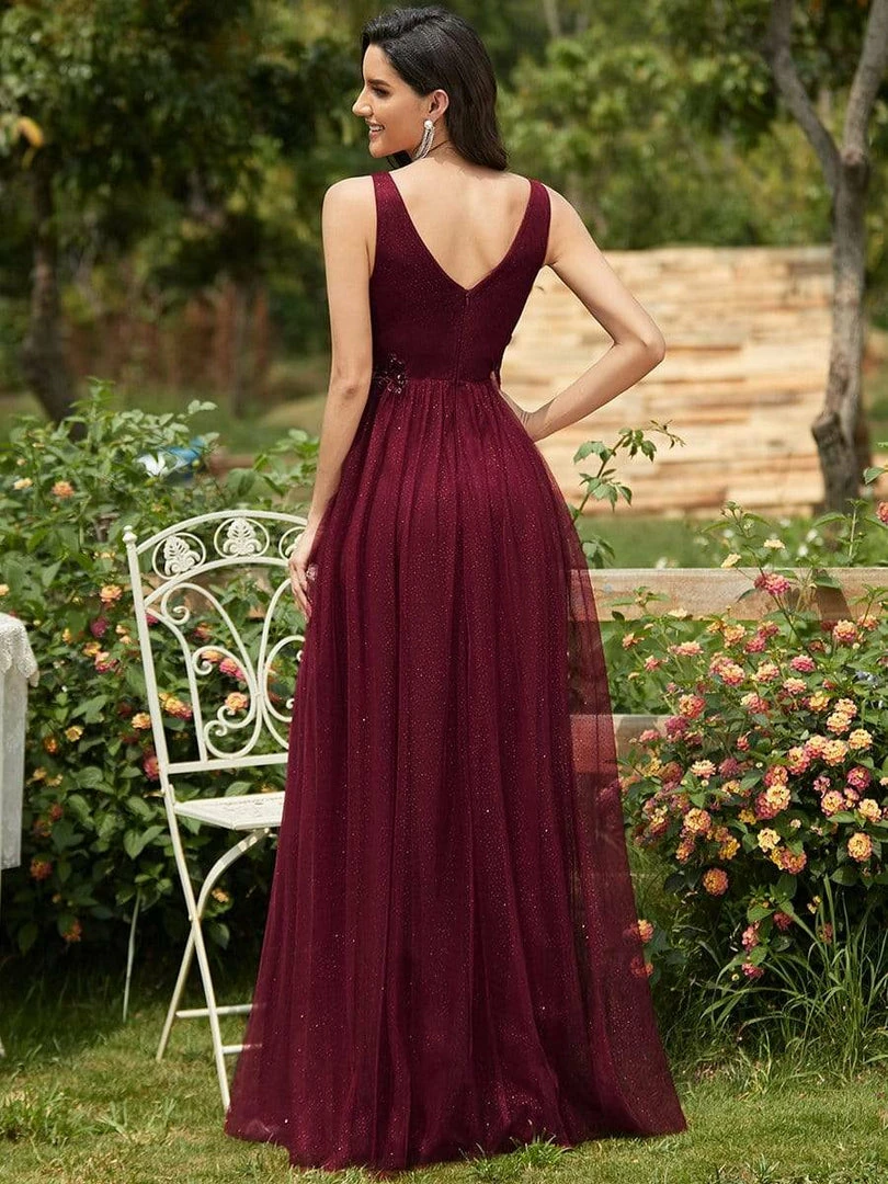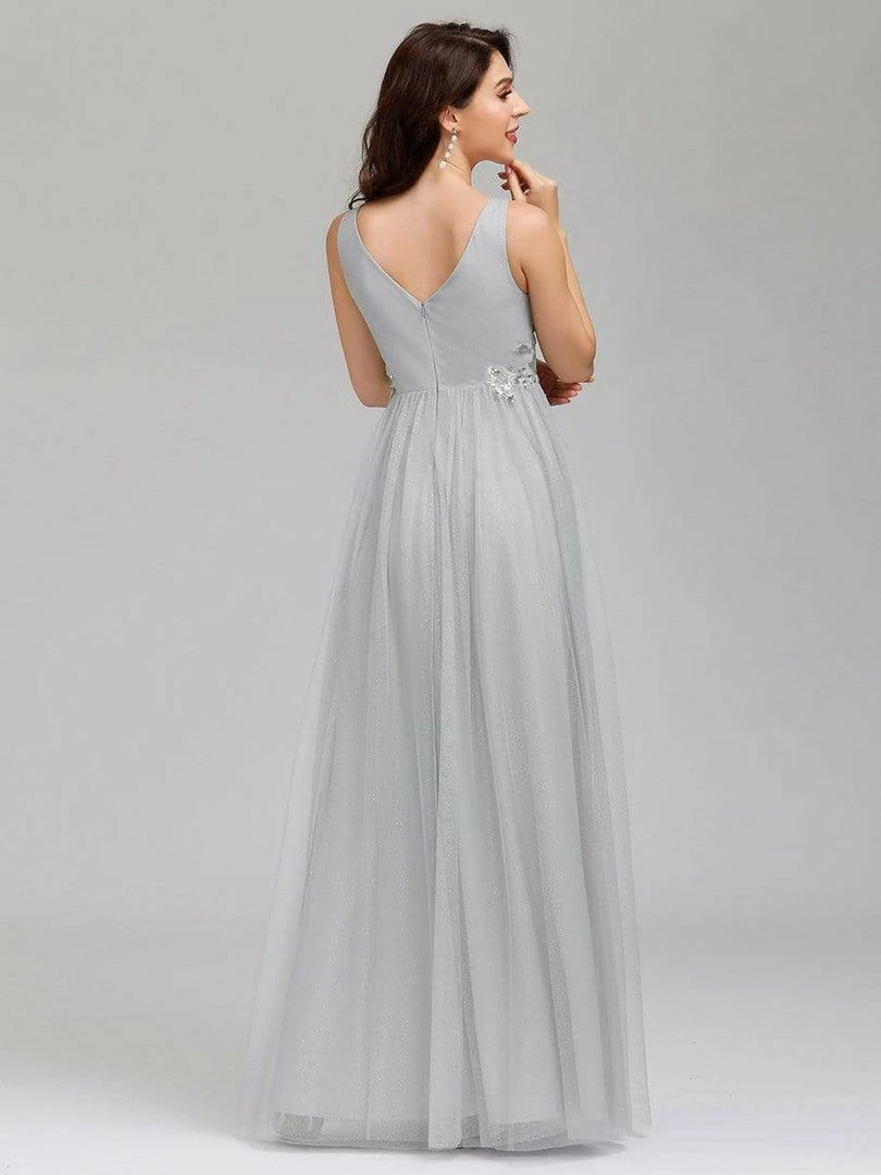 Featuring a sexy double V neckline and a floor length A-line skirt, while the delicate applique decorates the waist to create a figure flattering silhouette, this shimmery evening dress is perfect for any formal occasion! We think this elegant evening dress is perfect for all formal occasions, from evening party, cocktail, weddings to prom, homecoming and graduation!