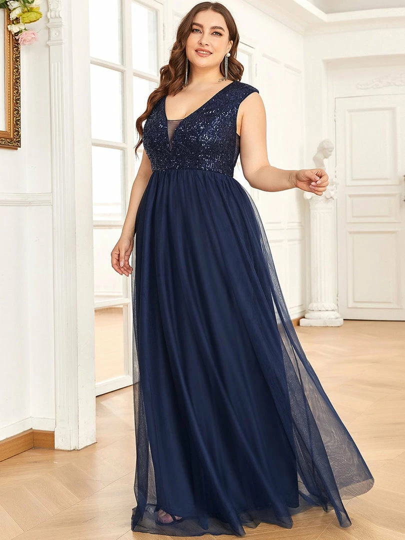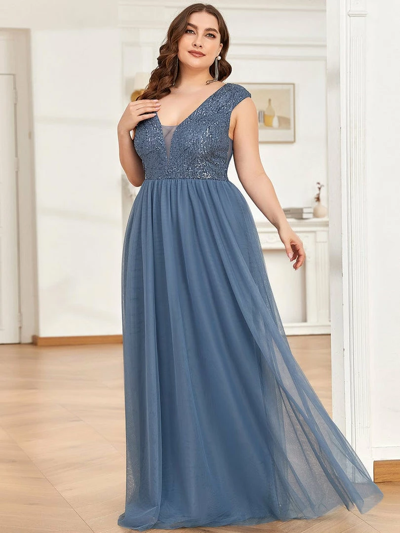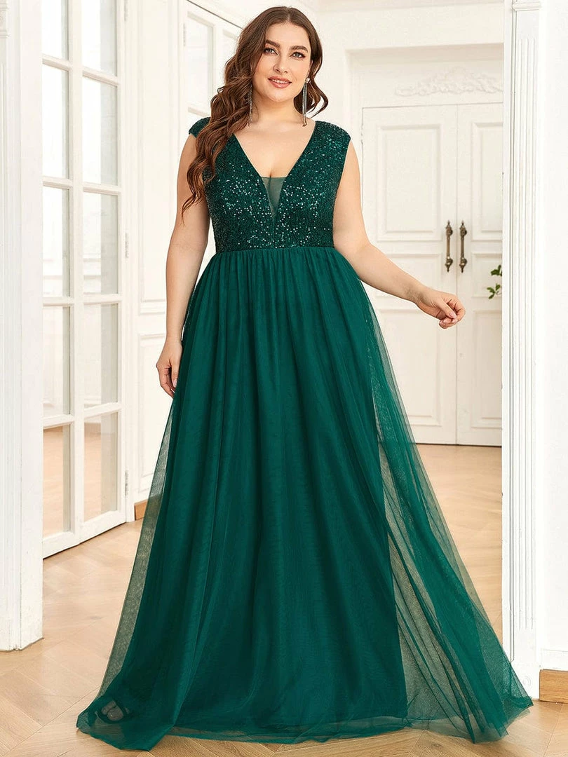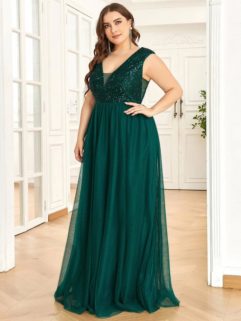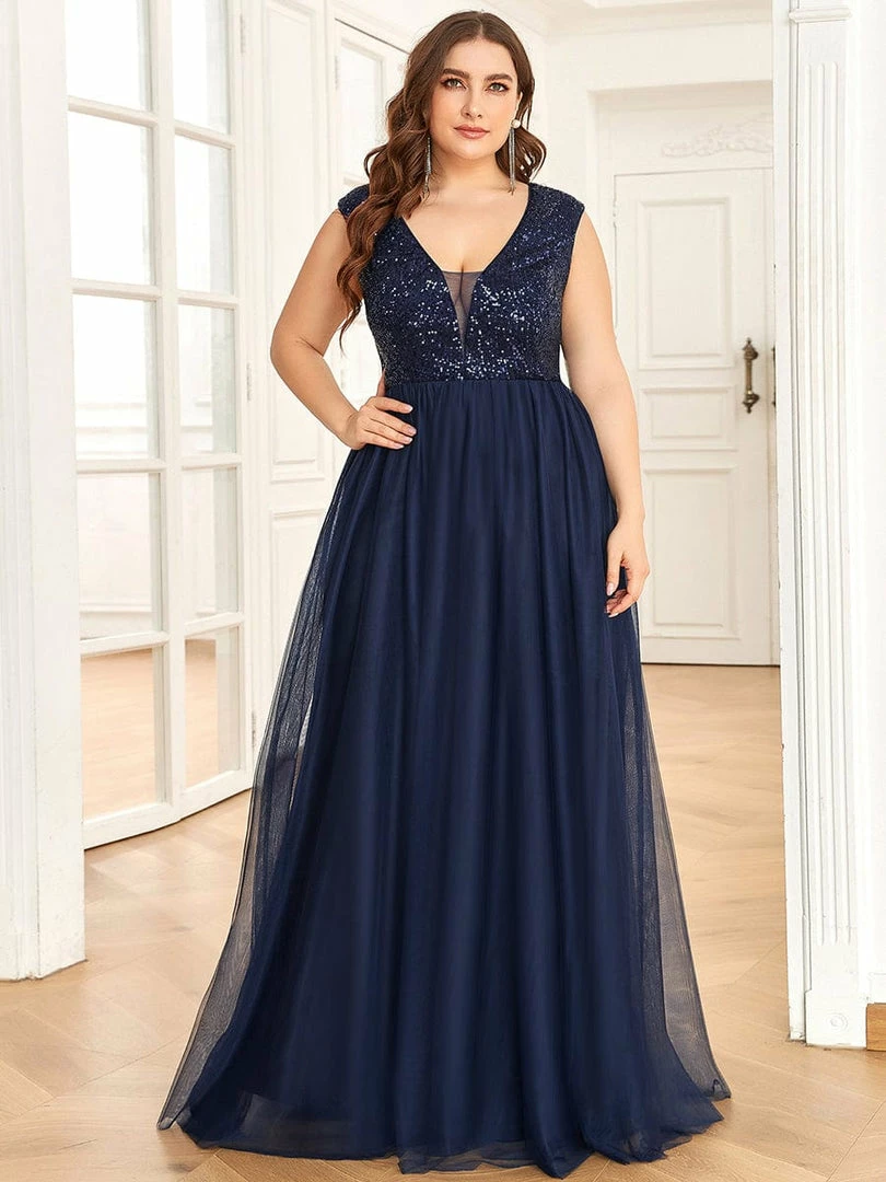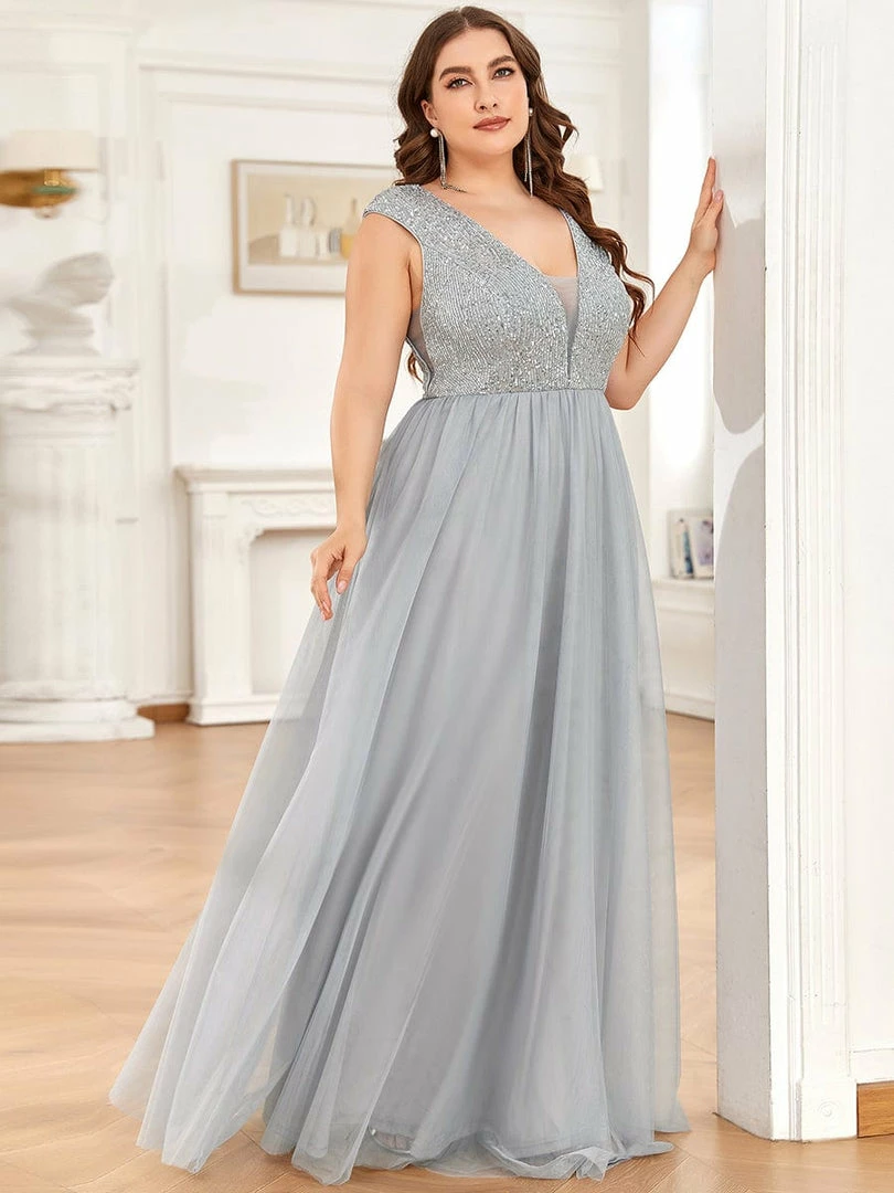 Celebrate your next special event with a lingering impression of elegance wearing this romantic sleeveless evening dress. A sparkling sequin sleeveless top with a plunging v-neckline and illusion panel sets the stage for a sophisticated experience. A comfortable cinched waist and layered floor-length tulle skirt finish this beautiful design, perfect for wearing with any heels. It’s perfect for evening party, cocktail, prom, homecoming, graduation, weddings, and any other formal affair!