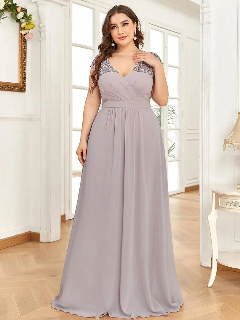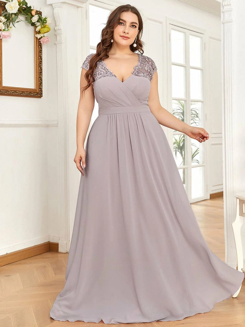 This gorgeous plus size a-line evening dress features a cap sleeve and stunning cut-out back design, giving it a look of pure romance and elegance on your formal special occasions. This plus size semi formal dresses provide the perfect complement to the flowing A-line silhouette and plunging v-neckline with darts on the front bodice for added support. You can wear it as a wedding guest dress for weddings too.