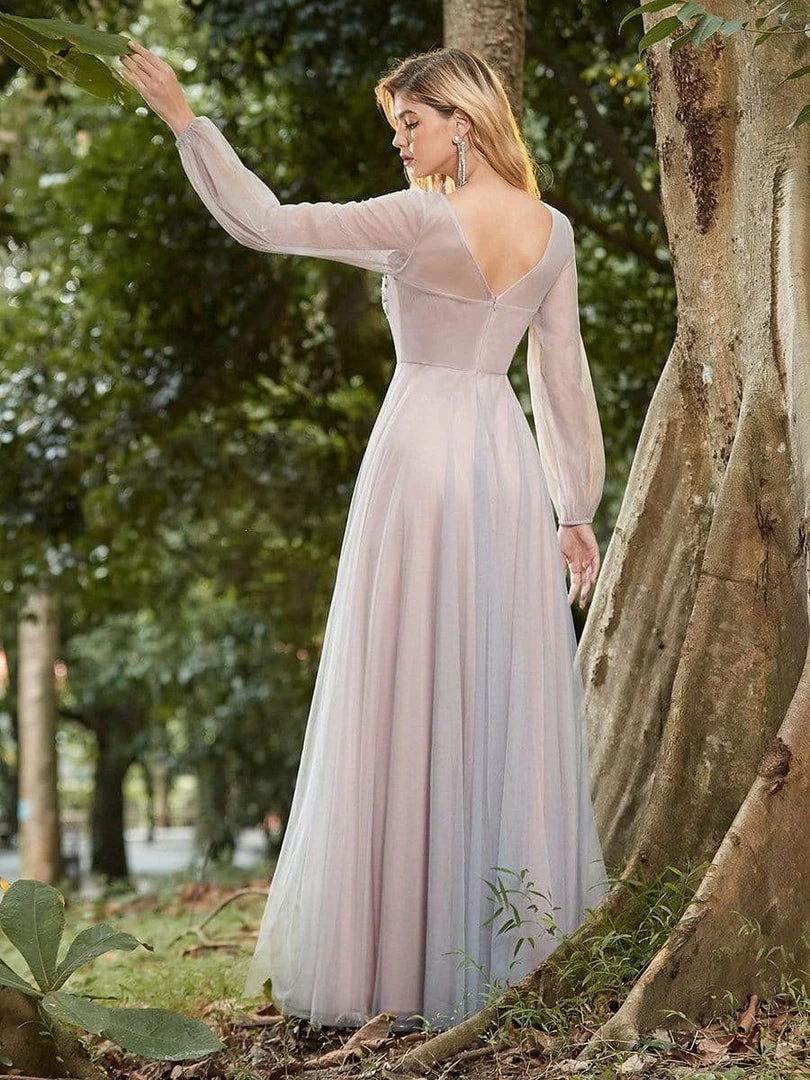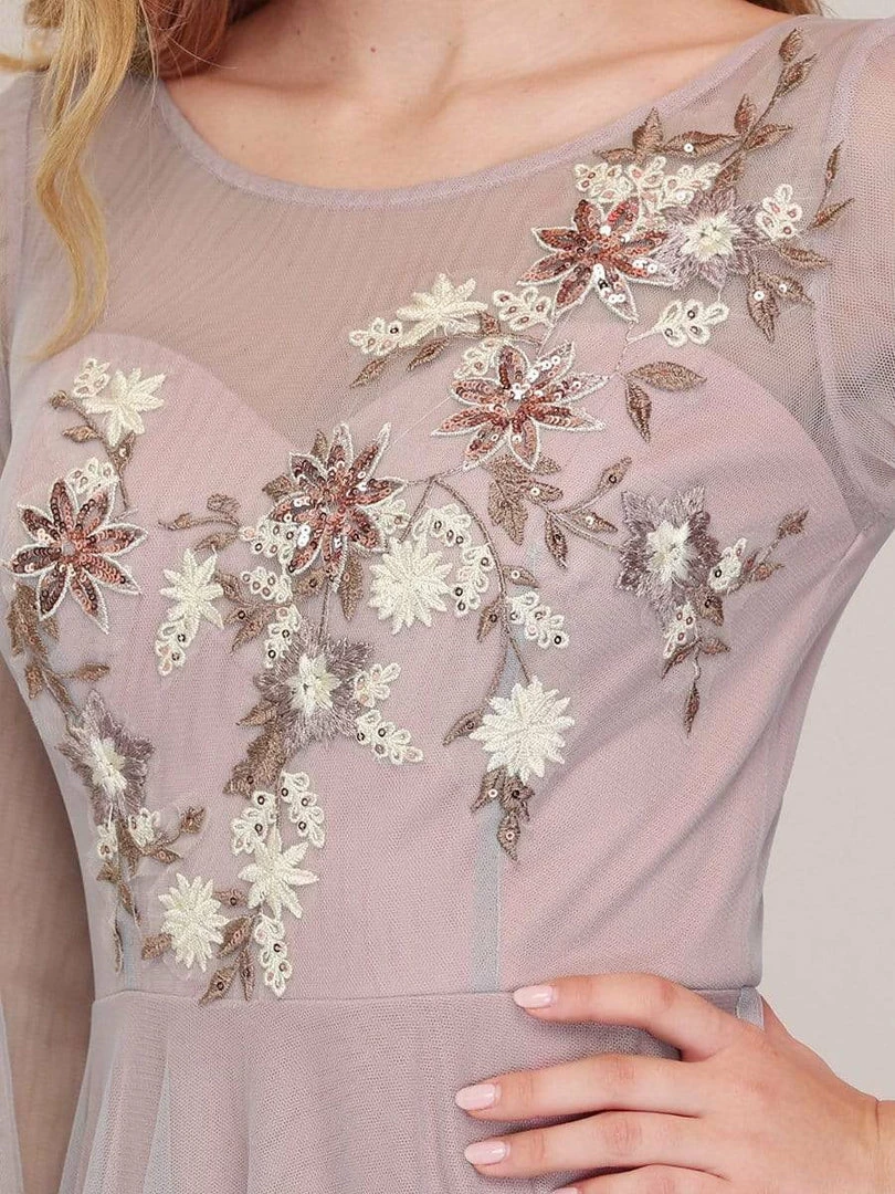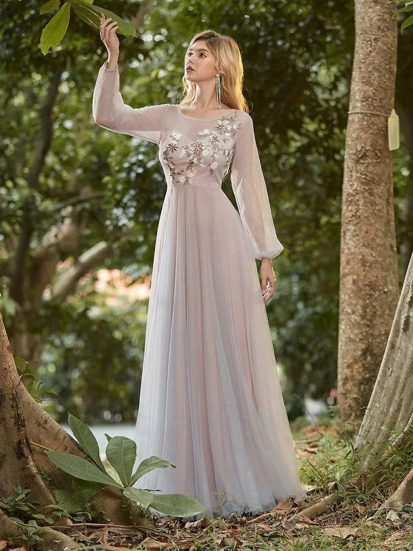 This beautiful bridesmaid dress will make you look like a princess and everyone will be left in awe by looking at you. It features round neck and bishop sleeves. The dress also has beautiful applique design at the front. By wearing this dress, you will surely make every woman around you jealous. We think this gorgeous dress is perfect for all formal occasions, from evening party, cocktail, weddings to prom, homecoming, and graduation!