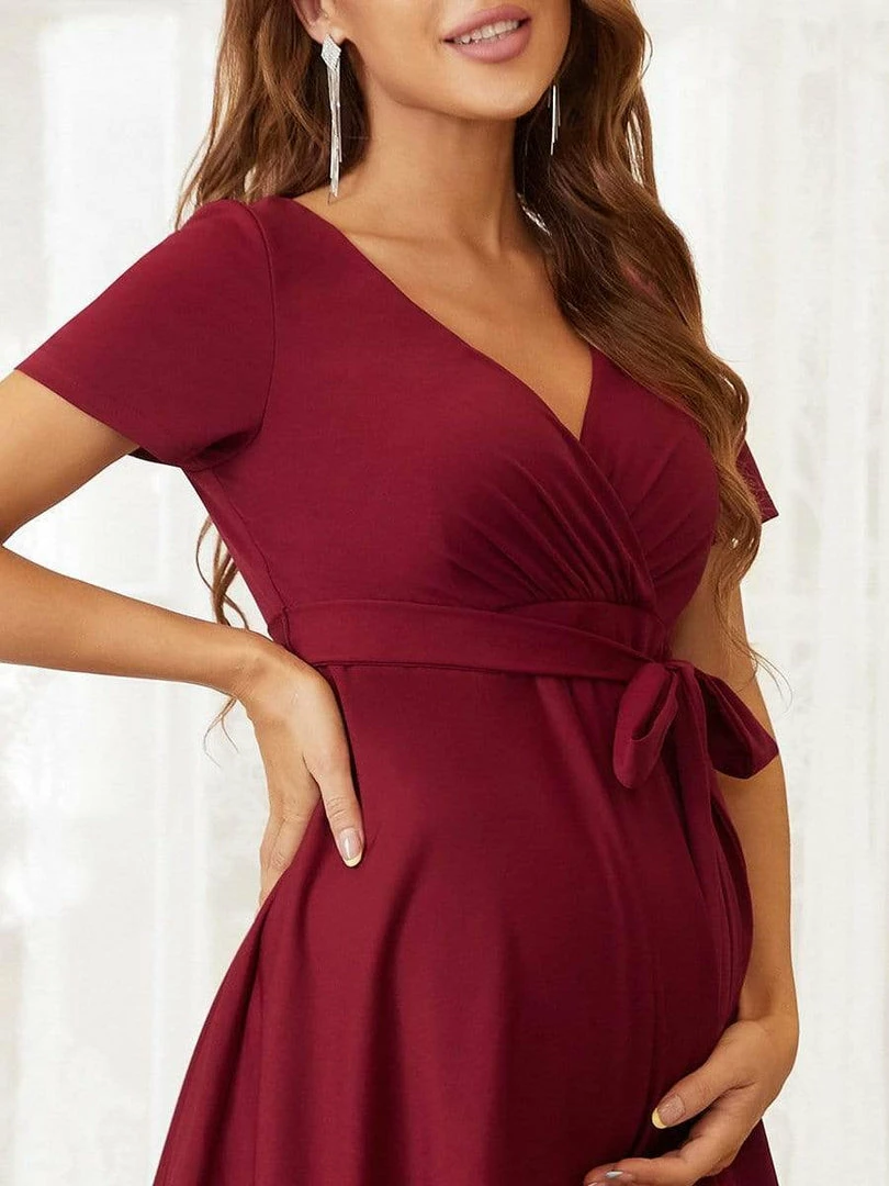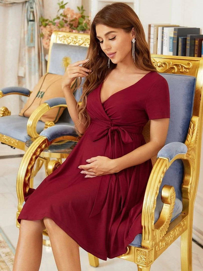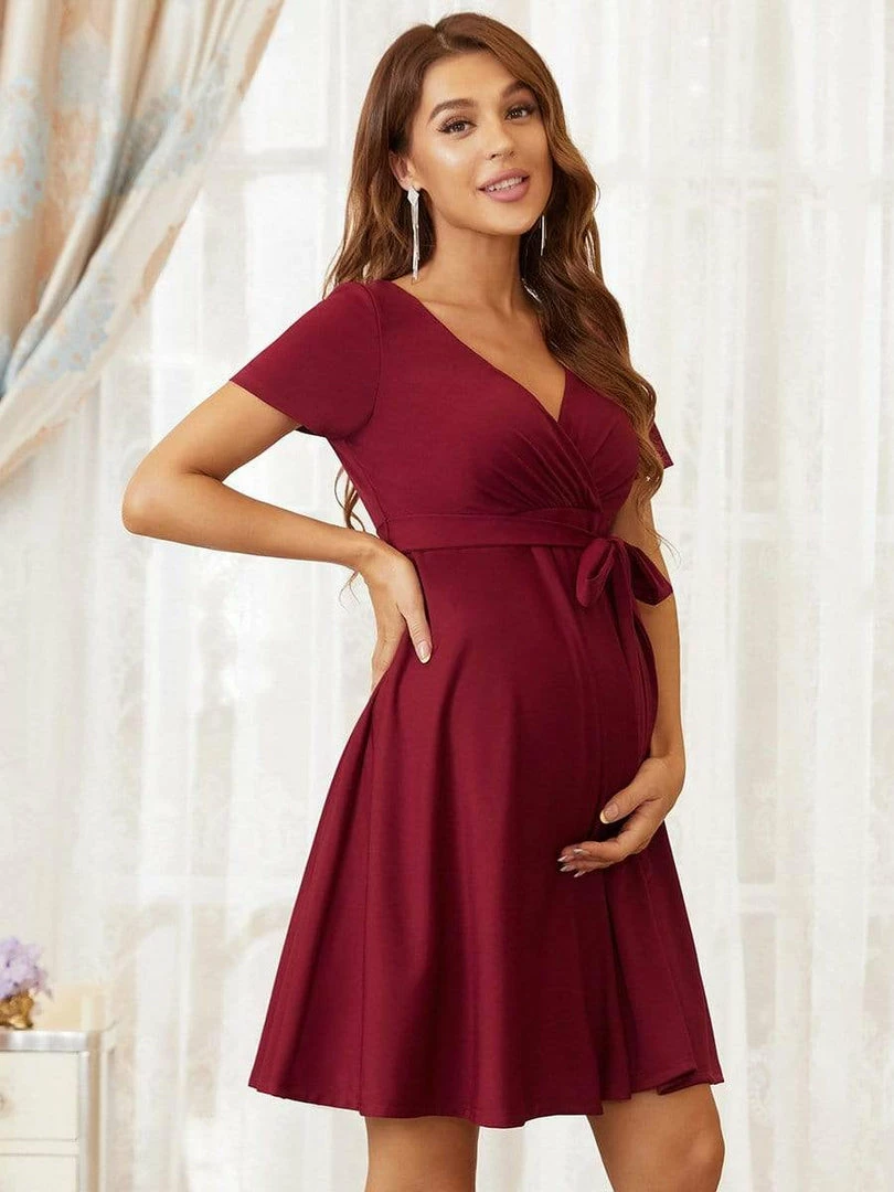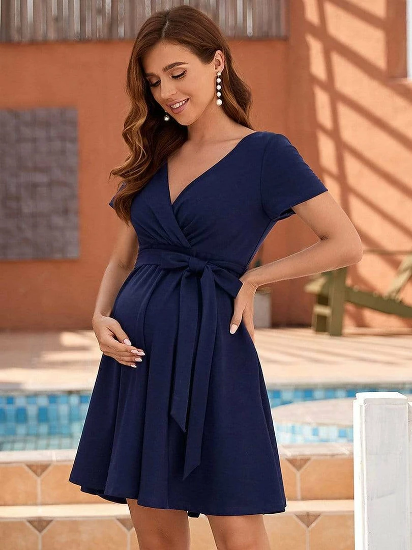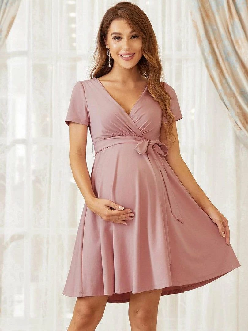 This comfortable maternity dress is stylish and chic, featuring an elastic waist, complementary a-line short skirt, and short sleeves, making this pretty dress perfect for the warmer months ahead. Wear this versatile maternity dress with sneakers, booties, heels, or flats for a different look each time.