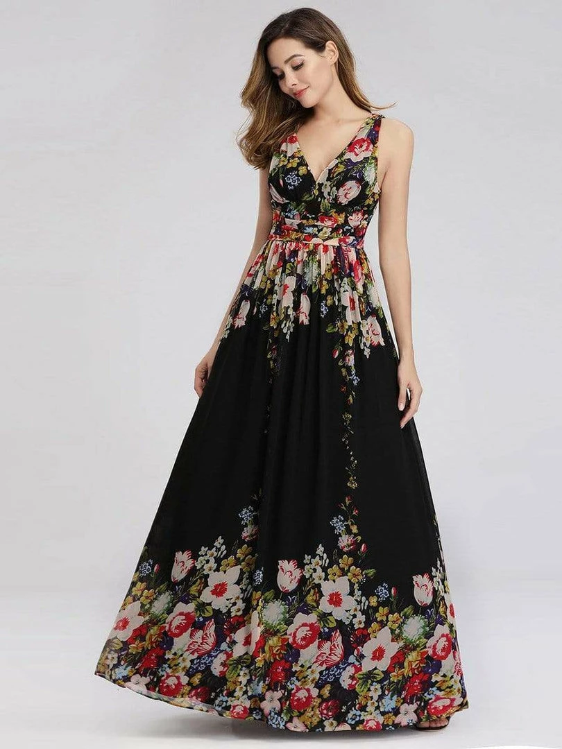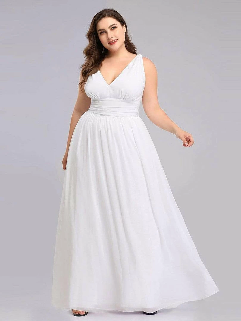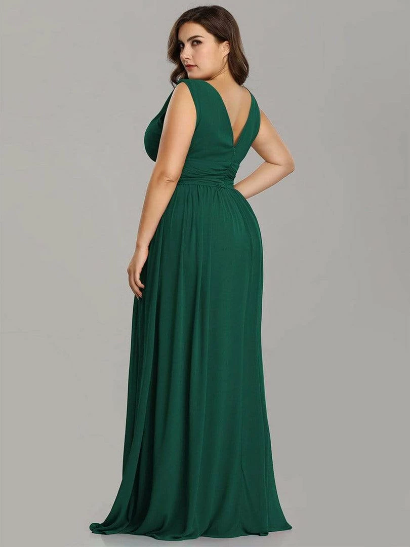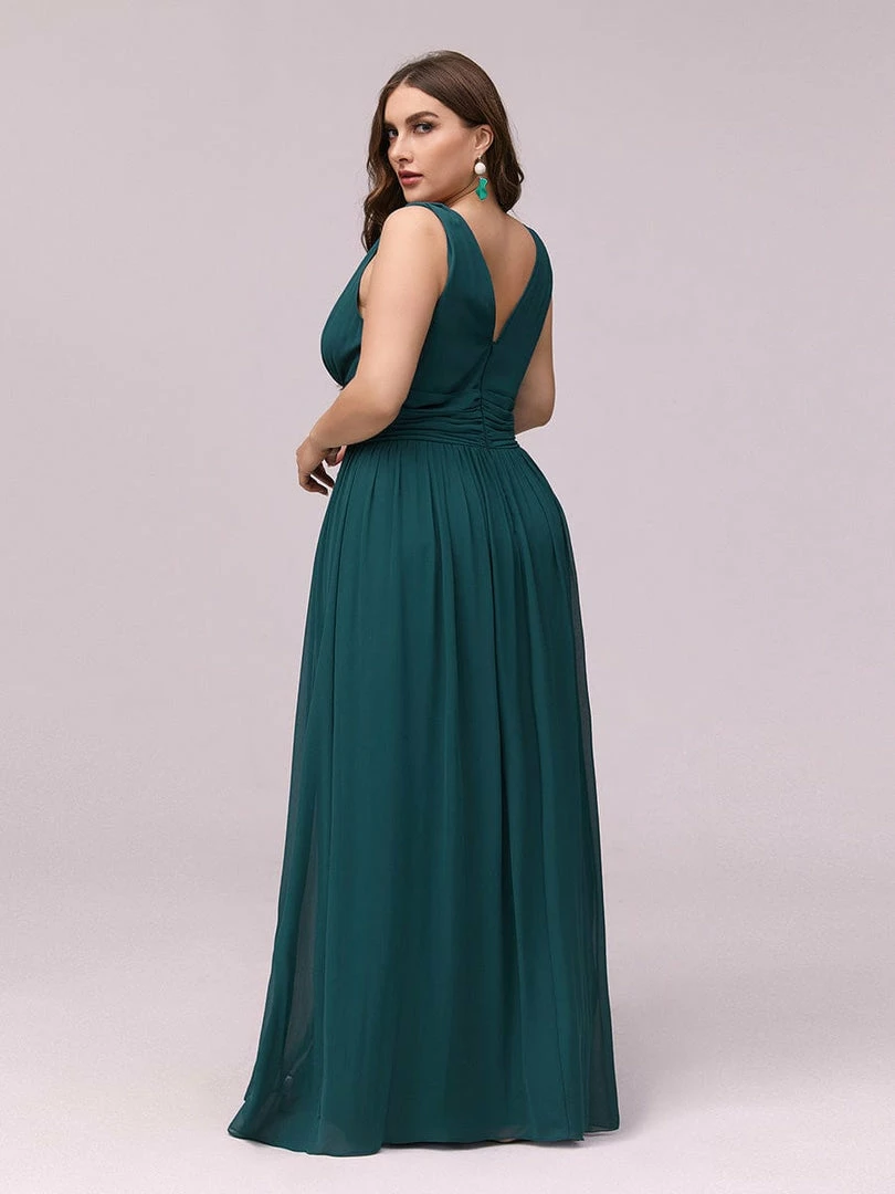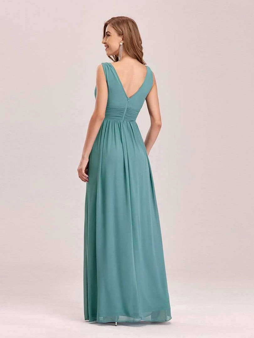 This plain chiffon maxi bridesmaid dress is perfect for any occasion you are attending. The sleeveless chiffon bridesmaid dress will be a hot addition to your wardrobe with its daring plunging neckline. The fit and flare design of this bridesmaid dress is an absolute beauty as it will look gorgeous on all body types. Wear it for a cocktail evening, wedding or even your prom night.