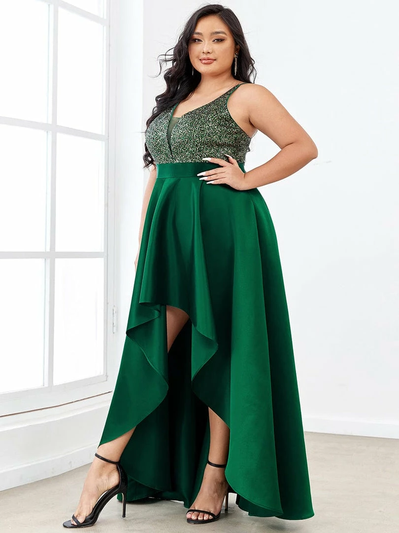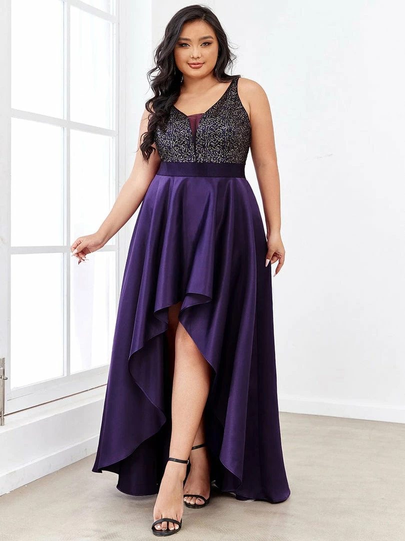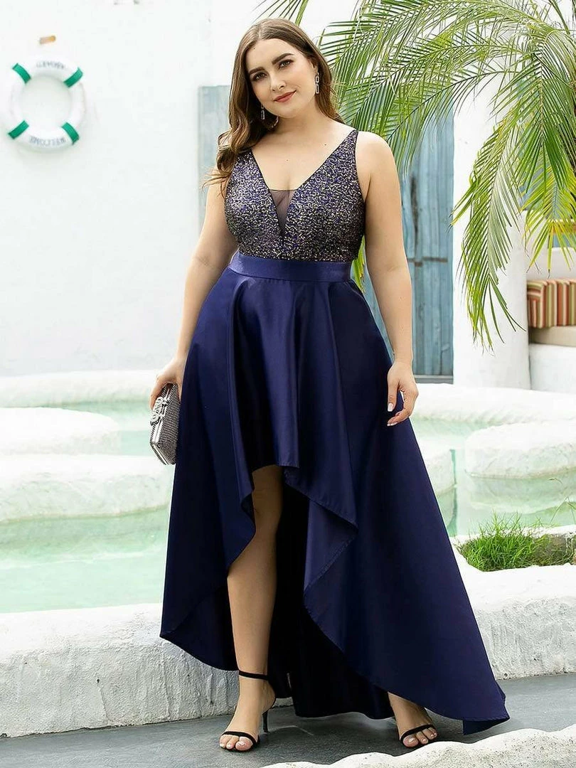 Featuring a sexy V neckline, an asymmetric skirt, this plus size evening dress is a perfect choice for people who are looking for an elegant look. We think this sparkly evening dress is perfect for evening party,cocktail,prom,homecoming,graduation,weddings,and any other formal affair!