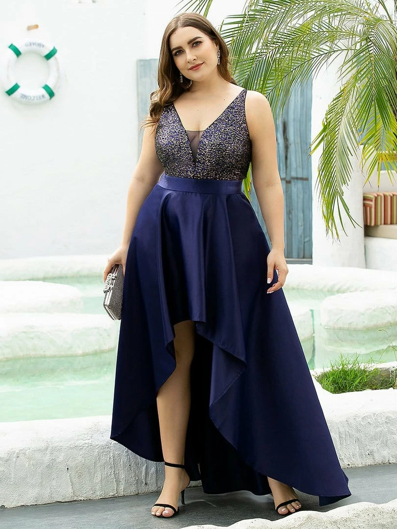Featuring a sexy V neckline, an asymmetric skirt, this shiny high low prom dress is a perfect choice for people who are looking for an elegant look. We think this sparkly high low prom dress is perfect for evening party, cocktail, prom, homecoming, graduation, weddings, and any other formal occasion!