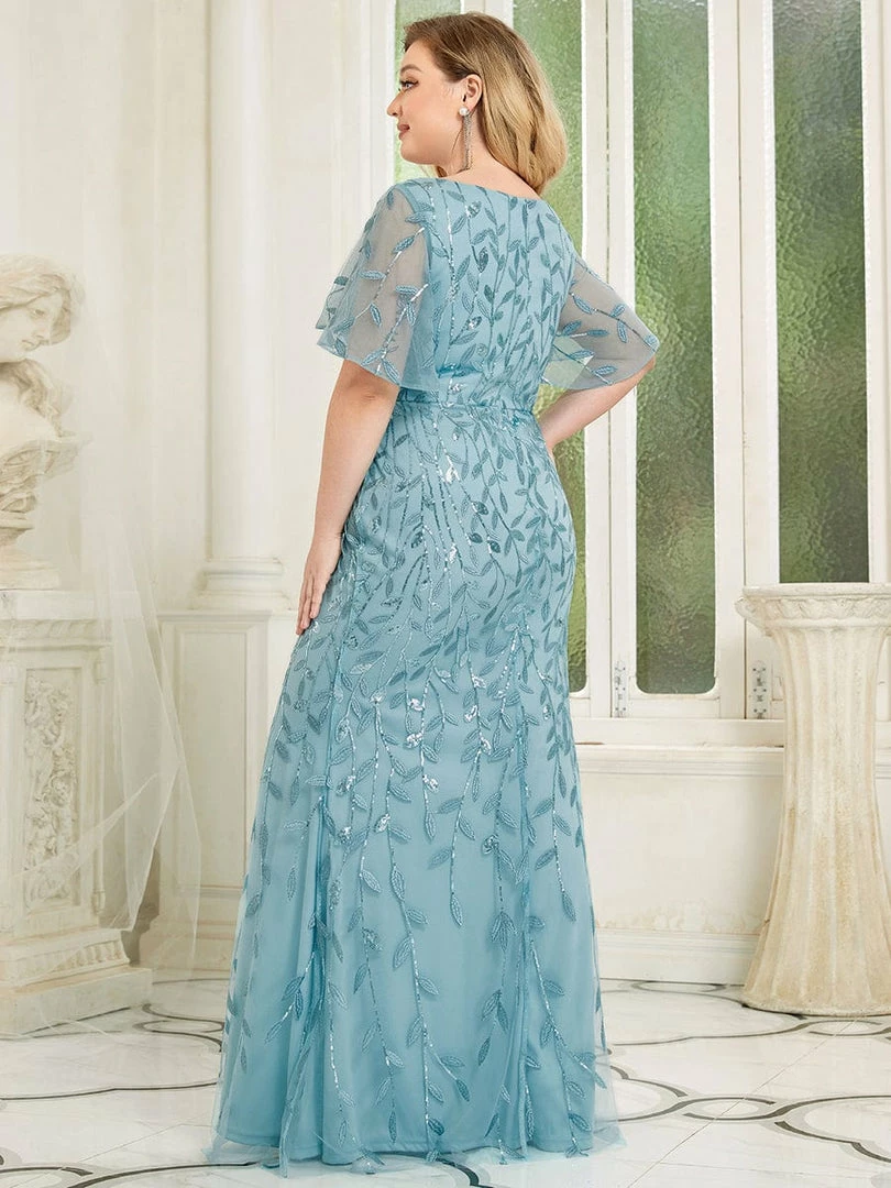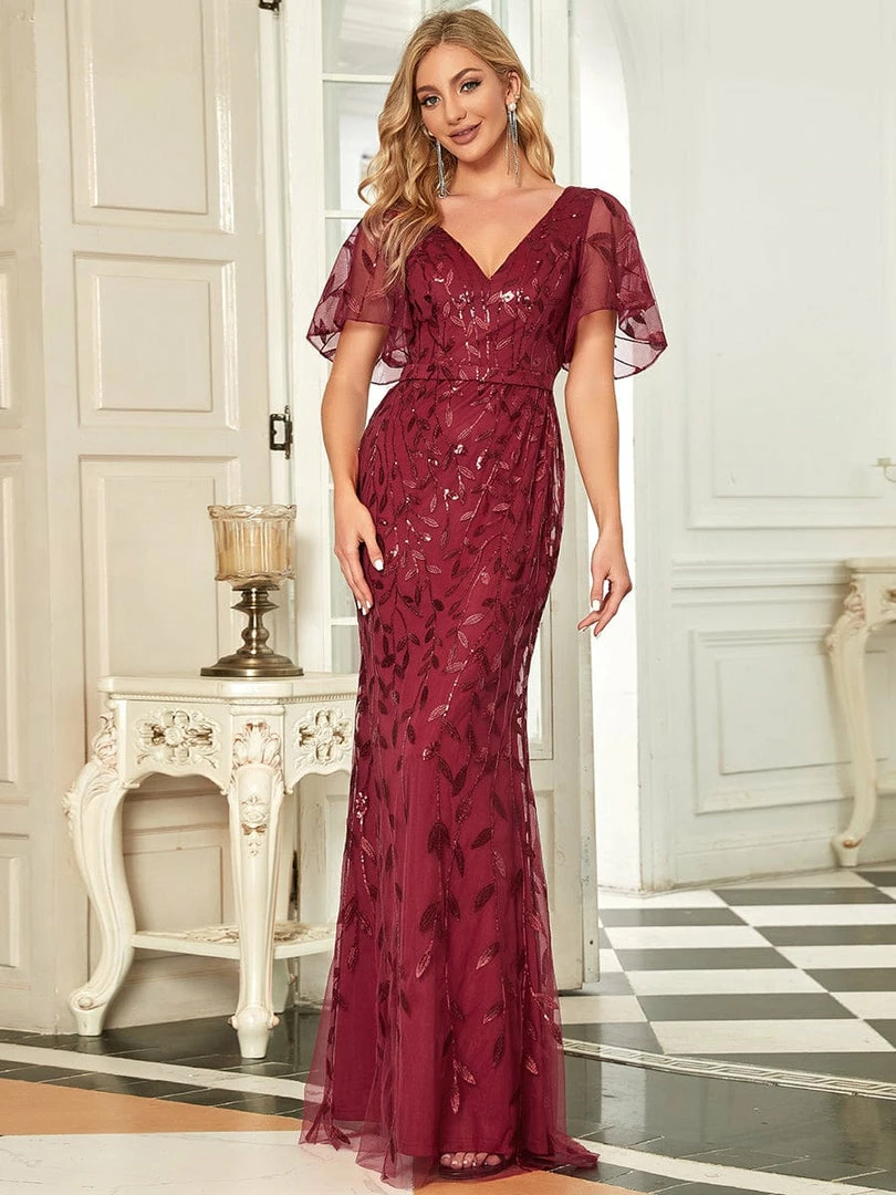 Ever-Pretty US Summer Dresses 2022 Custom Size Sparkly Embroidery Sequin V Neck Mermaid Evening Dress