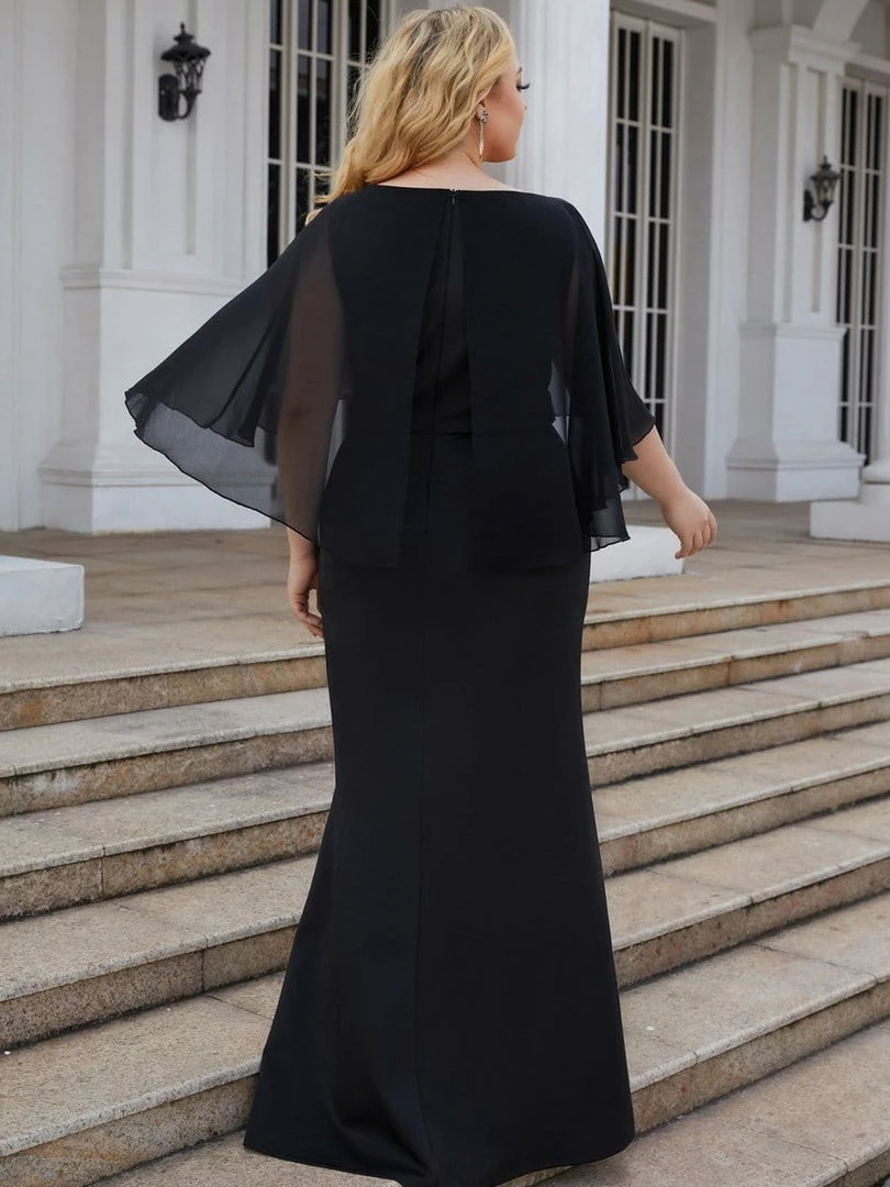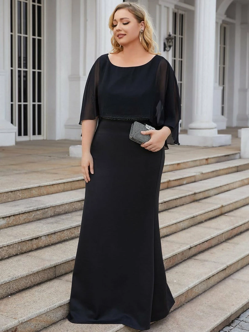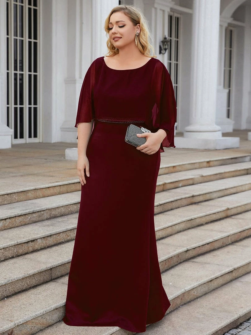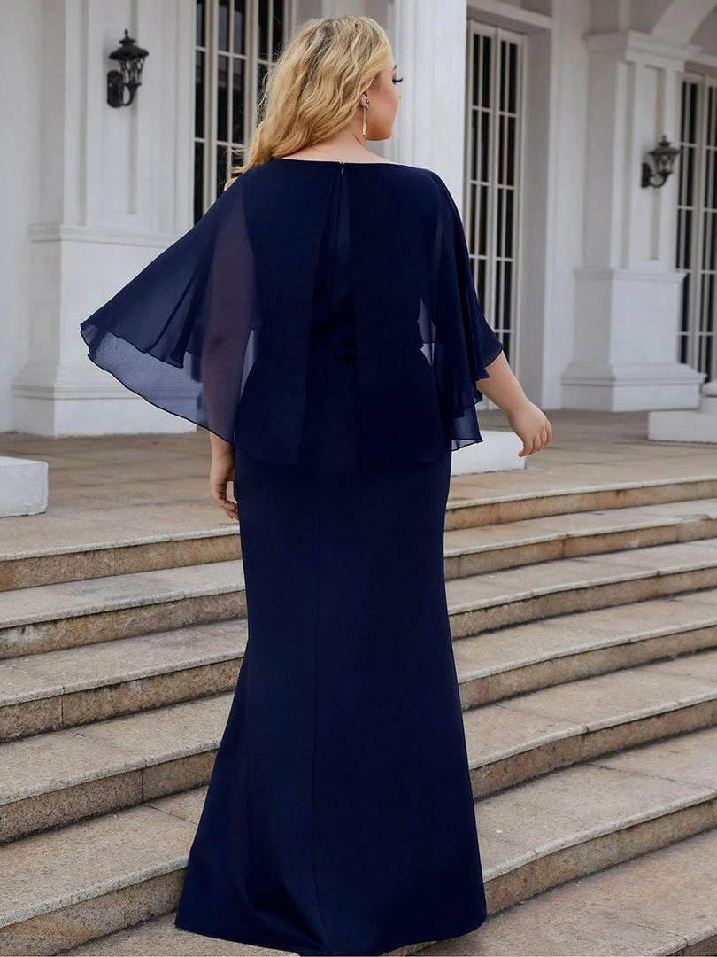 Wear this timeless formal mother’s dress to your girl’s wedding. The sheer fold-over top and sparkling embellished waist give it a sophisticated look, finished with a floor-length column fit that is both comfortable and elegant.