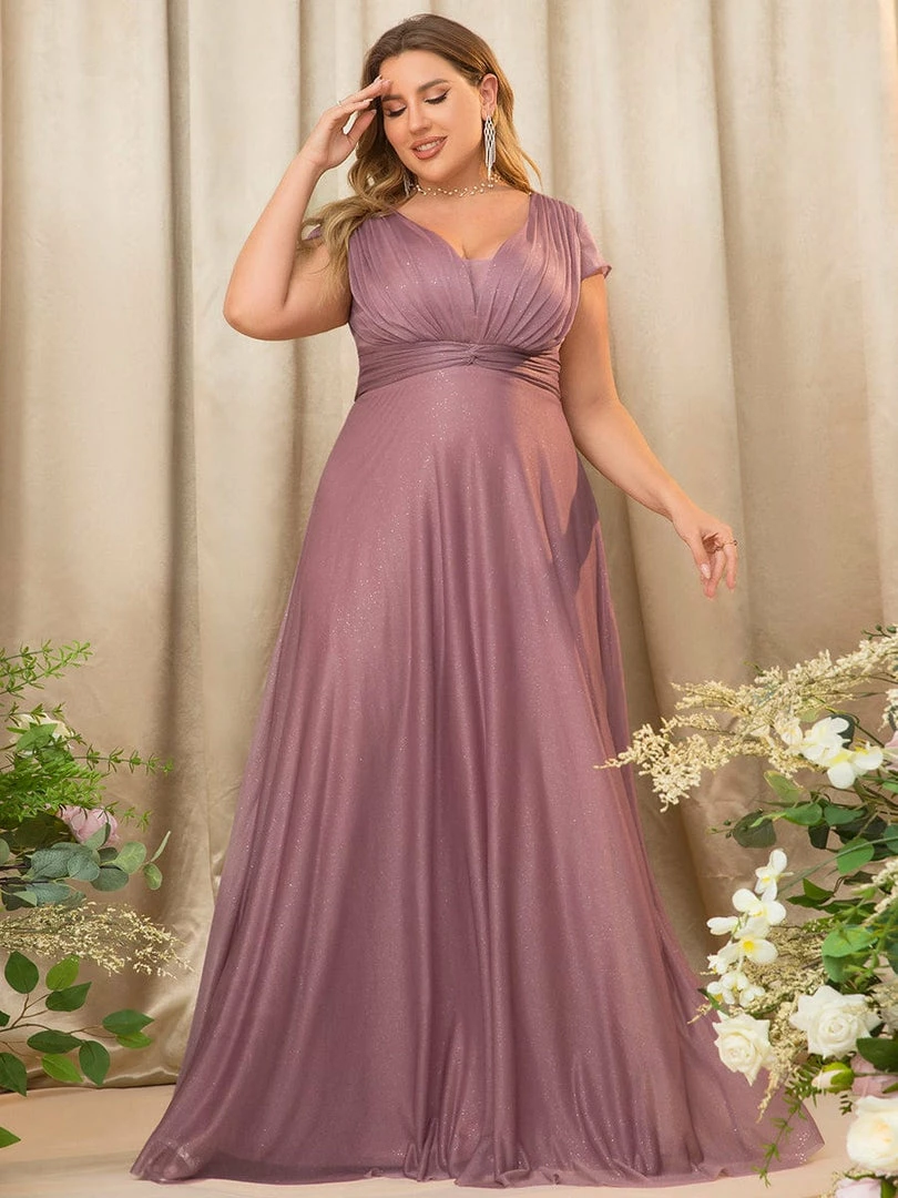 Make an elegant entrance with this breathtaking mother of the bride dress. A sparkling material with a ruched/pleated sweetheart neckline and cinched waist accentuate the figure with comfort. The flowing A-line silhouette skims the floor, making it perfect for pairing with high or low heels.
