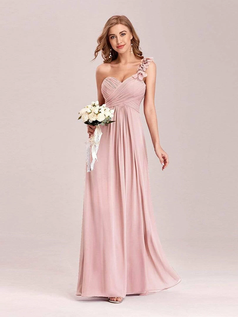 If you want to create an sweet feeling, then this one shoulder chiffon bridesmaid dress is one of your best choices.