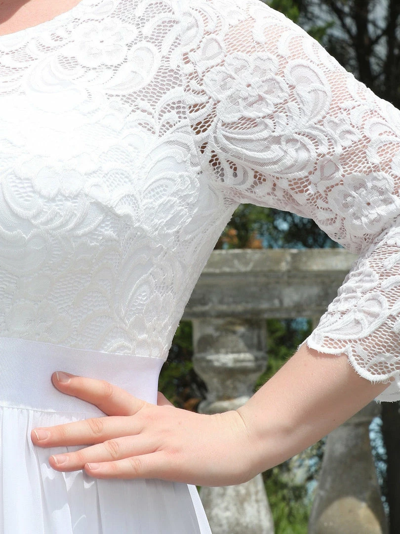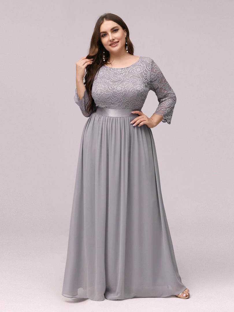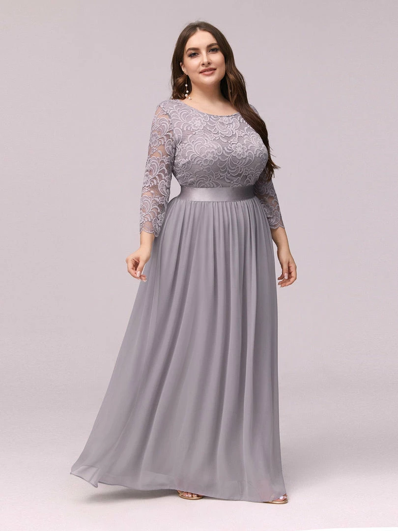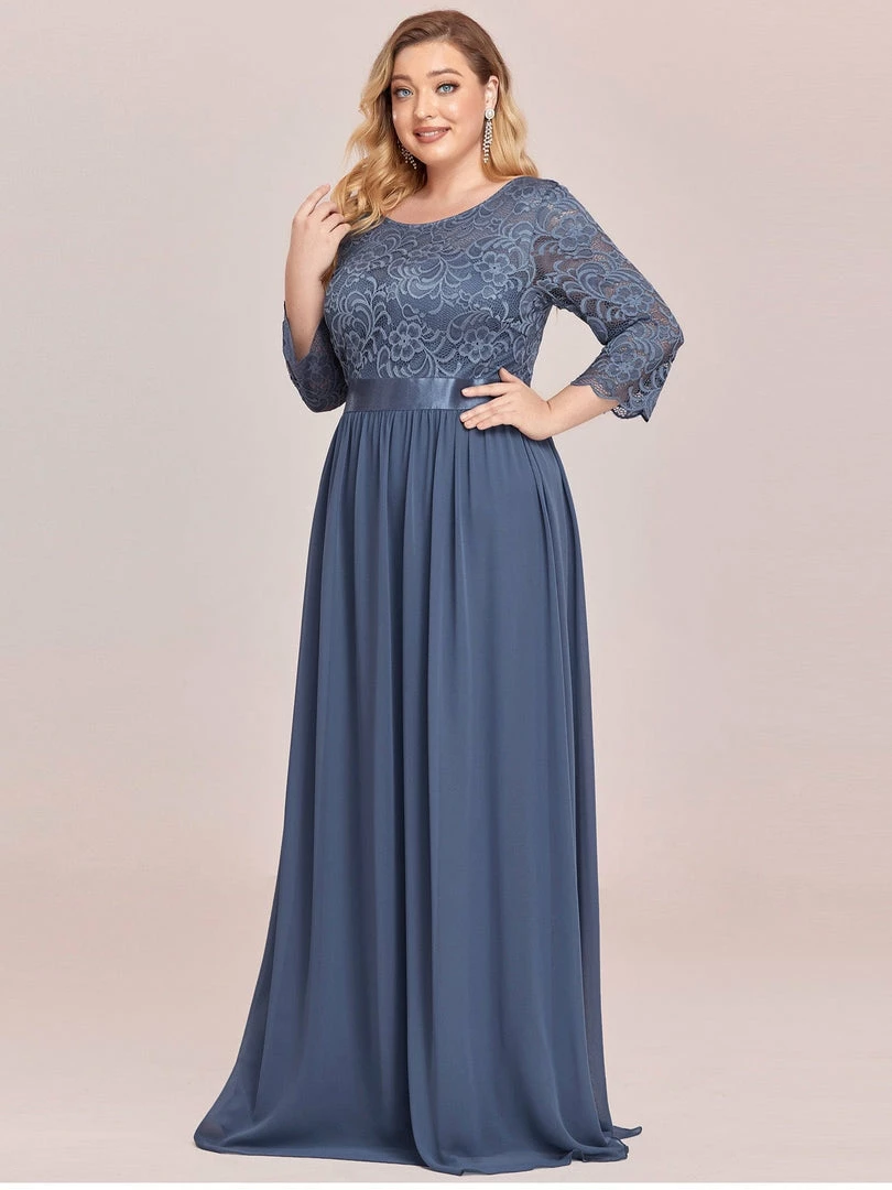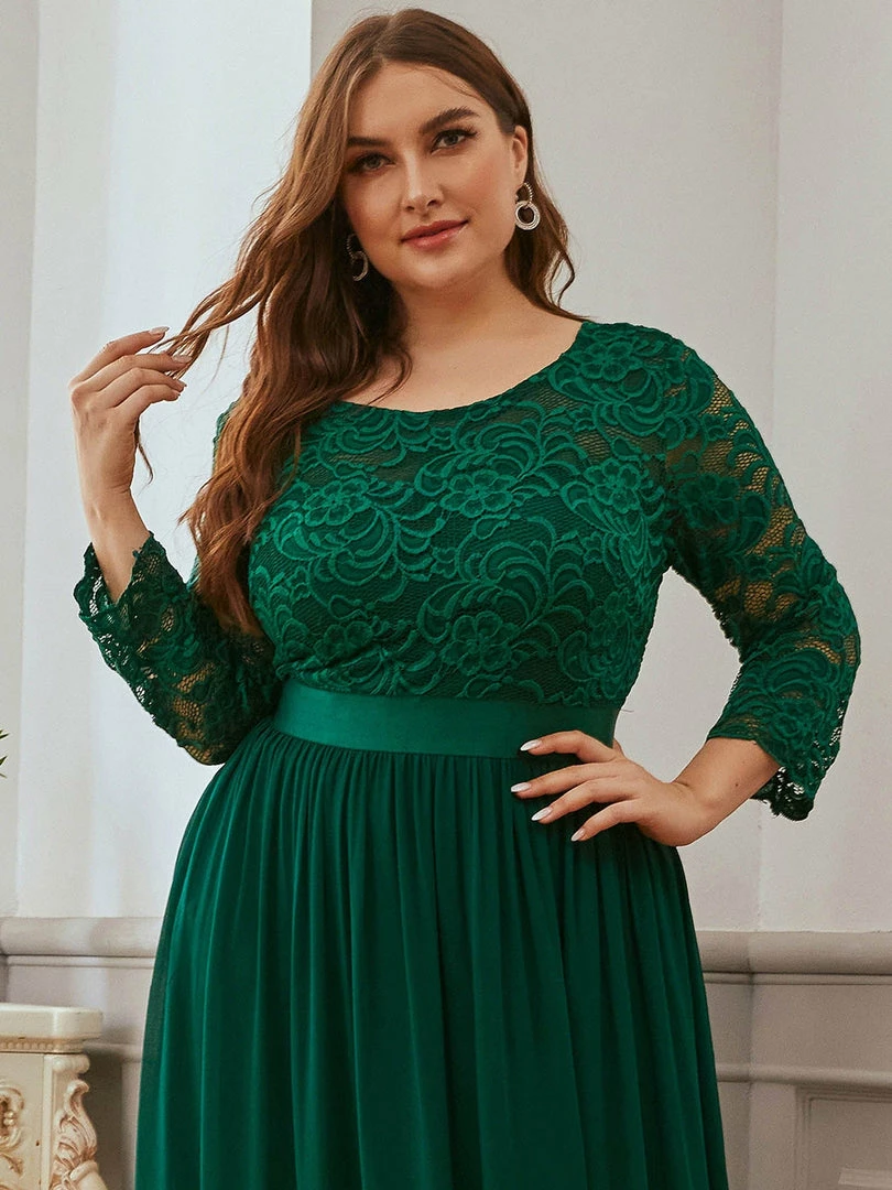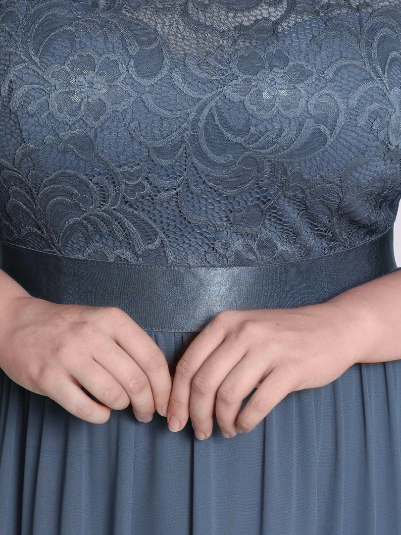 When the occasion calls for a chic and elegant look, go in for this flowing see-through lace evening dress. The long sleeve lace evening gown is amplified because of its lace bodice and sleeves. The floor length lace evening dress is uniquely complemented with a figure-flattering wide ribbon waistband that accentuates the waistline. The romantically designed V-shaped back guarantees a look that will make heads turn upon your arrival at any party, wedding or even your prom.