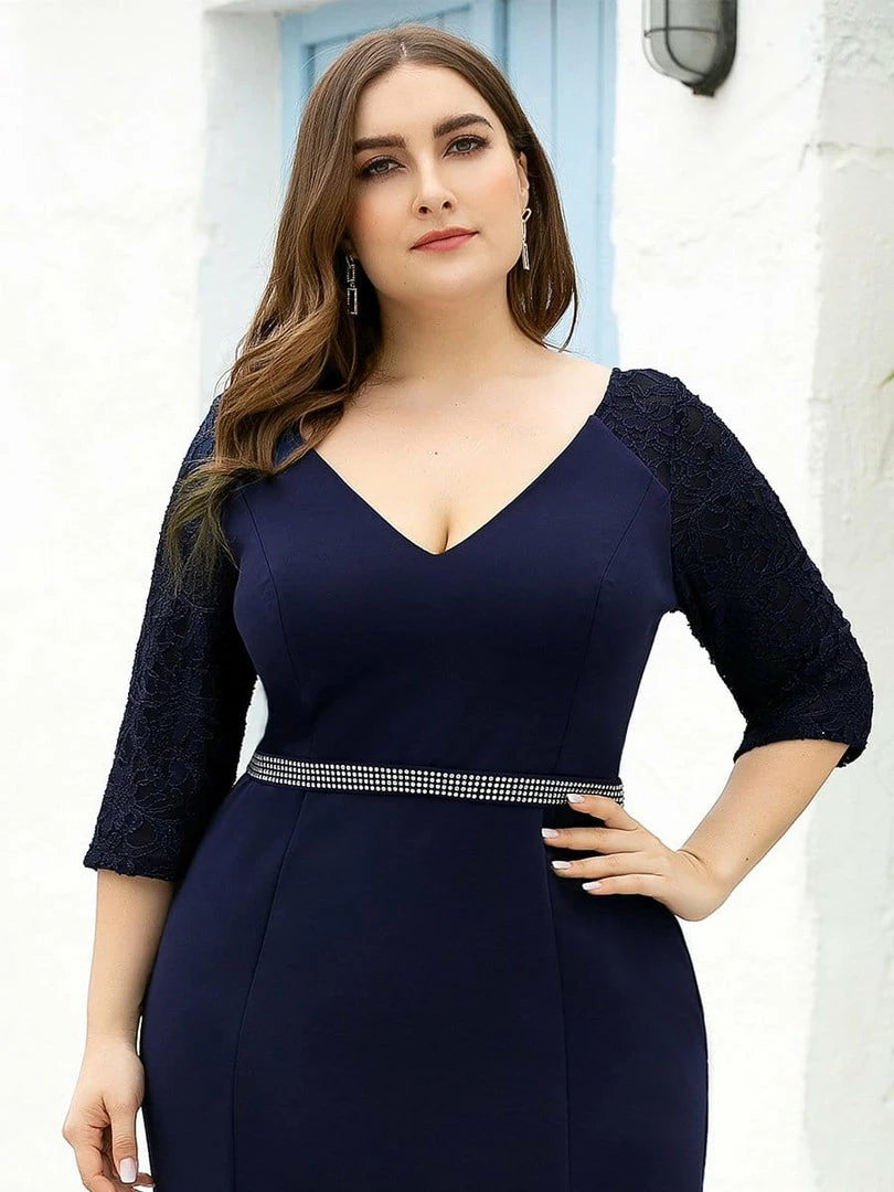 When simplicity and elegance is combined then everything looks great and this is the example of this beautiful evening dress. This dress features a plunging v-neckline and three-quarter sleeves. It has a fishtail silhouette which accentuates the curves and looks amazing. The hot bead decoration at the waistline also looks quite alluring. This gorgeous dress is perfect for all formal occasions, from evening party, cocktail, weddings to prom, homecoming and graduation!